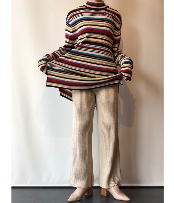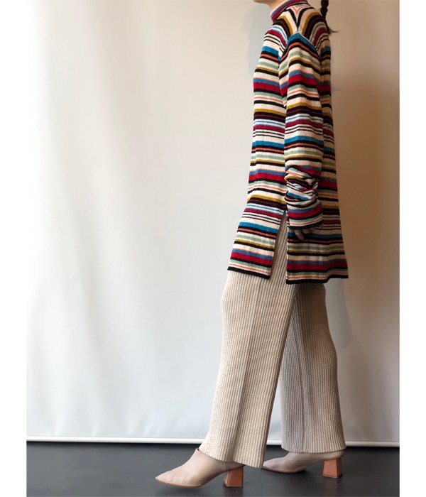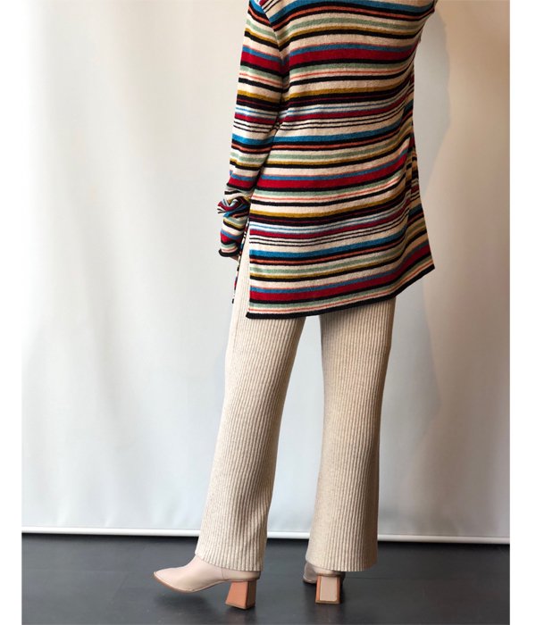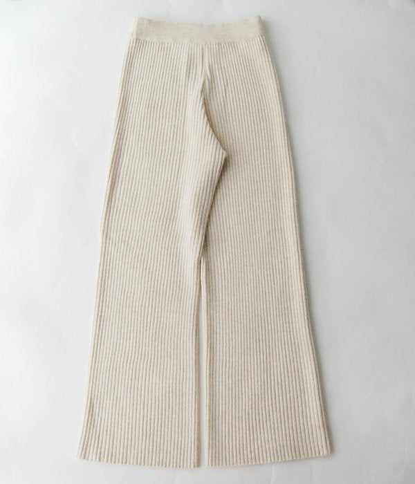 ハイゲージのリブ組織で編んだニットパンツ。腿から裾にかけて抜け感のあるストレートシルエットです。ウールの暖かさ、柔らかさが心地良くデイリーに使える一枚。