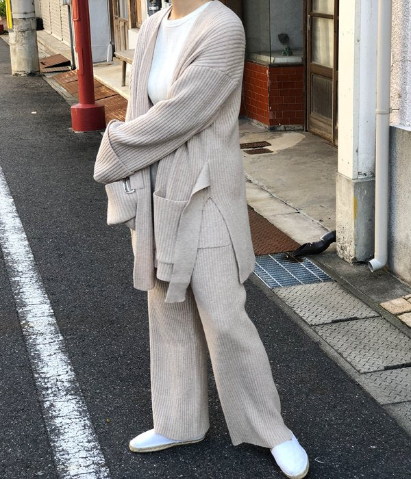 TOP > PHEENY > PHEENY/12G RIB KNIT PANTS(OATMEAL)