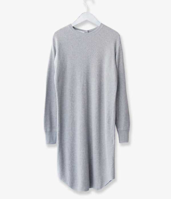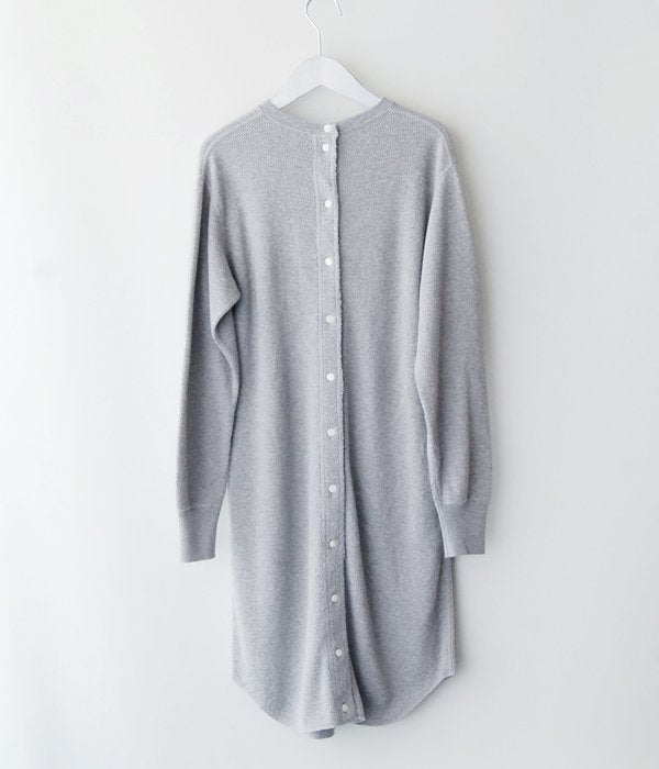 オリジナルのサーマル素材を使用のバックオープンロングスリーブ。今シーズンはワンピースとして1枚でも着用できるような丈にアップデート。ウエストを少しだけシェイプさせ女性らしいラインに仕上がりました。