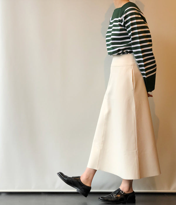 PHEENYからAMUNZEN A-LINE SKIRTが入荷しました。オリジナルのアムンゼン生地を使用の綺麗なAラインスカート。ベルトレスのウエストでカットソー生地特有の伸縮性を生かして着用します。ほど良い厚みとハリがありカットソー生地のスカートとは思えないクリーンな見え方に。洗濯しても型崩れしにくく、速乾性も兼ね備えたケアのしやすさもポイントです。