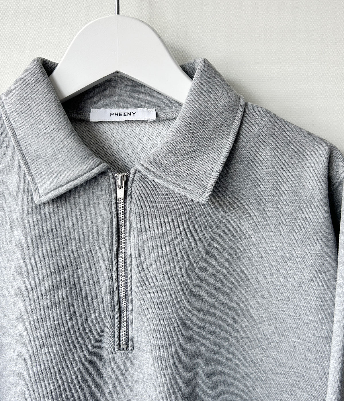 PHEENYからATHLEISURE HALF-ZIP COLLARED PULLOVERが入荷しました。リラックス感のあるシルエットが魅力の衿付きスウェット。フロントのファスナーは開き具合で印象を変えられる仕様。型崩れしにくく、速乾性も高い実用性のある一枚。風合いを引き出す加工でミニマルながらも存在感があります。
