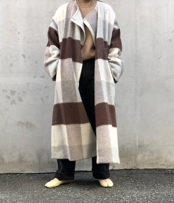 PHEENY/BIG BLOCK CHECK GOWN COAT(IVORY CHECK)
