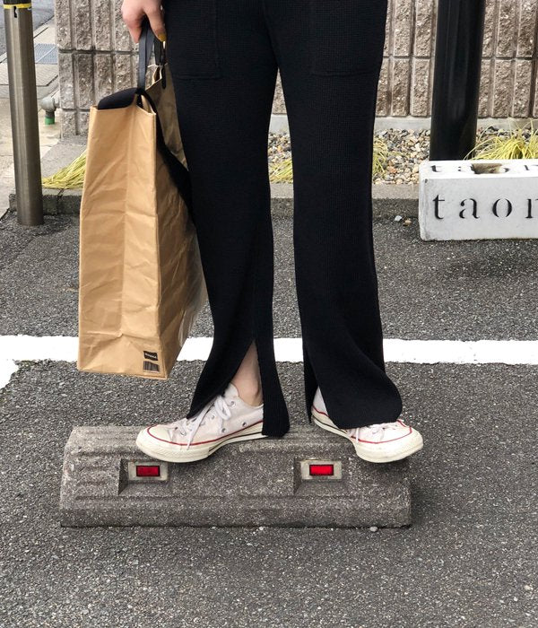 PHEENY/BIG WAFFLE SLIT PANTS (BLACK)
