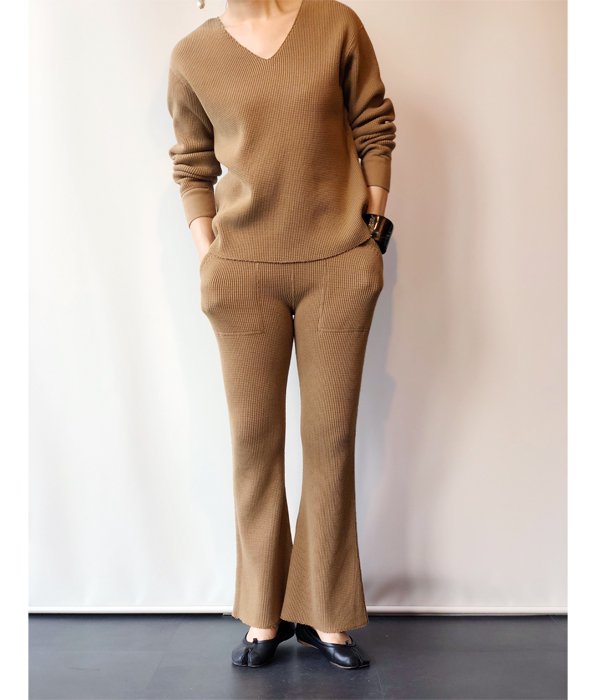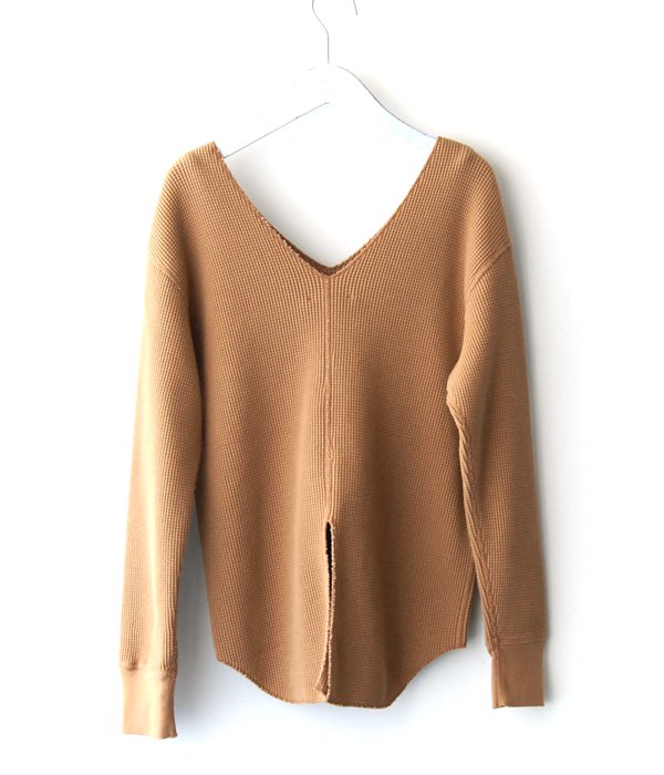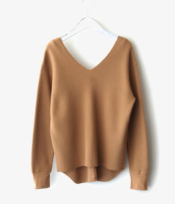 PHEENY/BIG WAFFLE V-NECK L/S(CAMEL)(4)