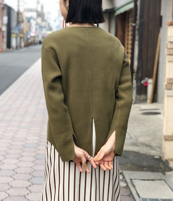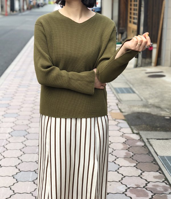 PHEENY/BIG WAFFLE V NECK L/S (OLIVE)(2)