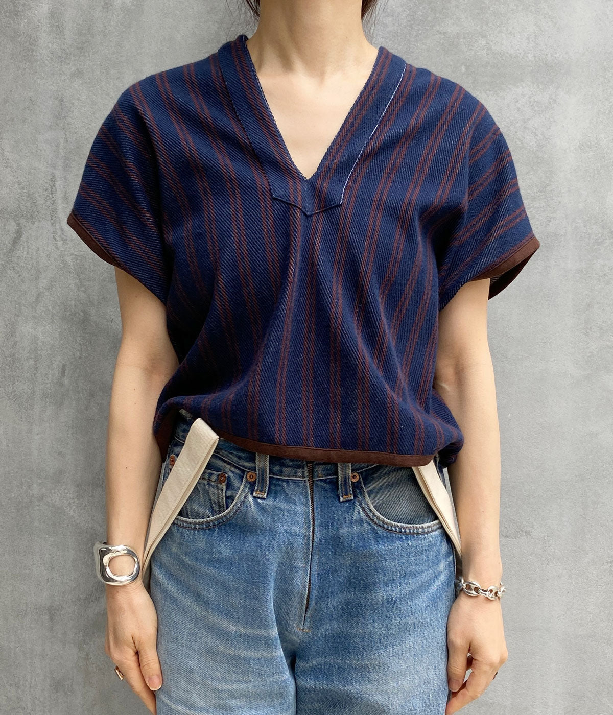 PHEENY/COTTON INRAY STRIPE SHORT TOPS(NAVY)