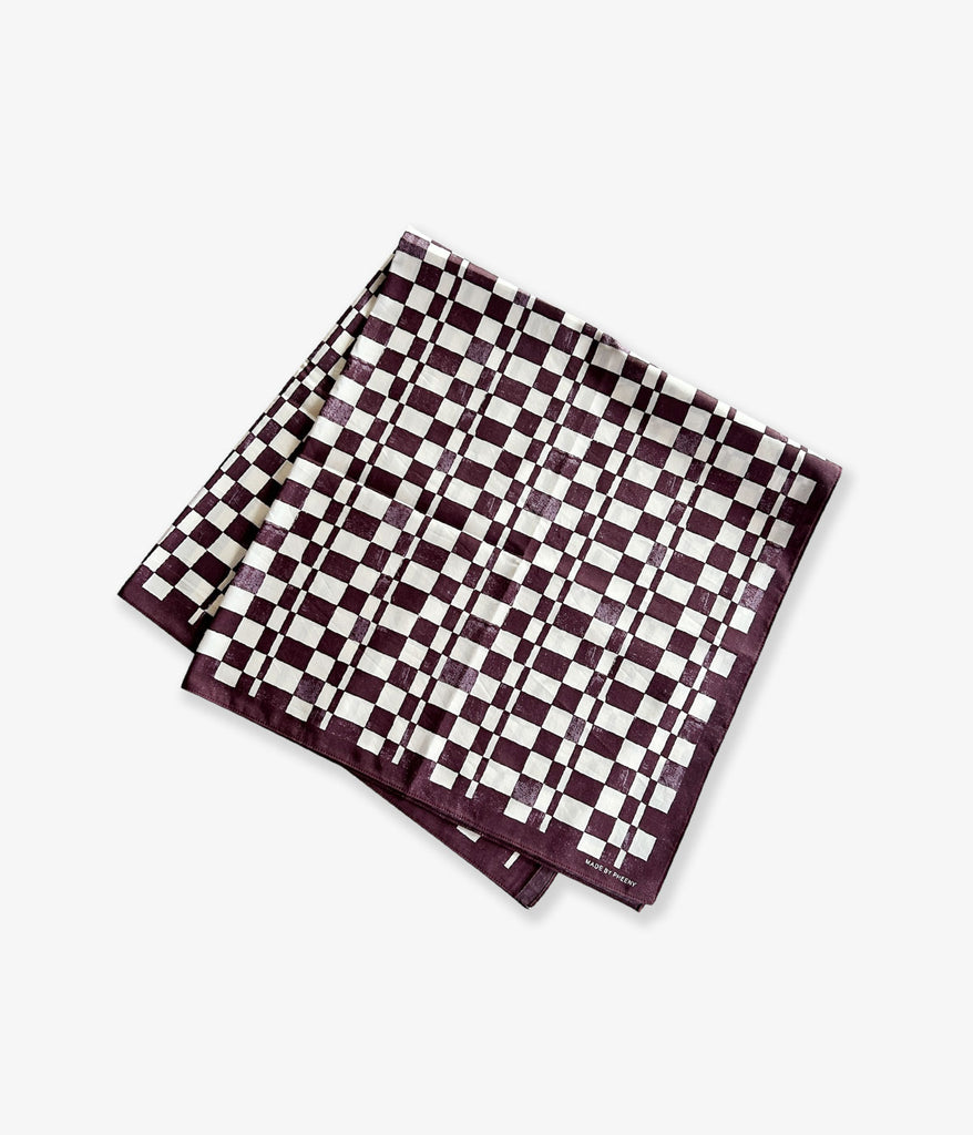 PHEENYからCOTTON SILK CHECKERED SCARFが入荷しました。シルクとコットンを交織した、柔らかく滑らかな肌触りの生地を使用したスカーフ。キルトの図案から着想を得たオリジナルのチェック柄。図案の段階で手作業でスタンプを施し、掠れやムラをそのまま活かし味わい深い表情に。熟練の職人による手技ならではの風合いが魅力です。スカーフとしてはもちろん、エプロン風に巻いても楽しめる一枚。気分やシーンに合わせて自由にスタイリングを。