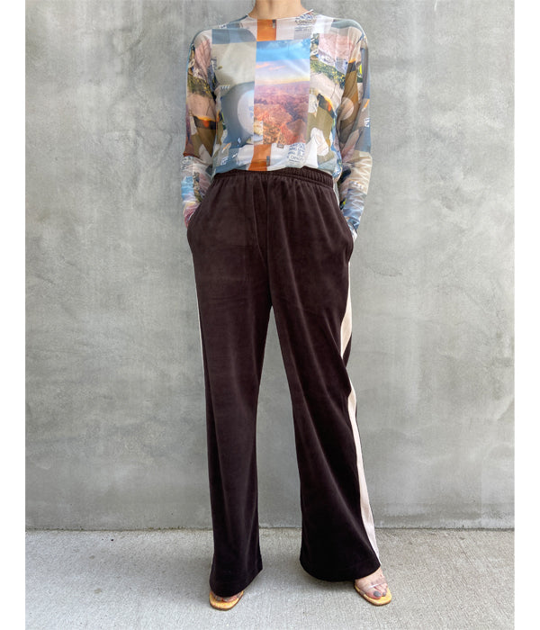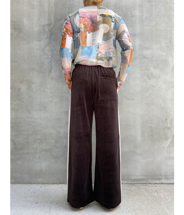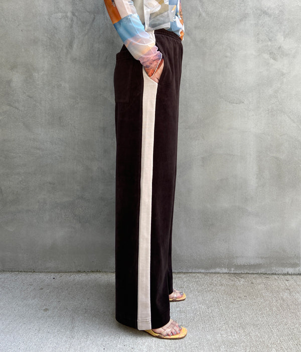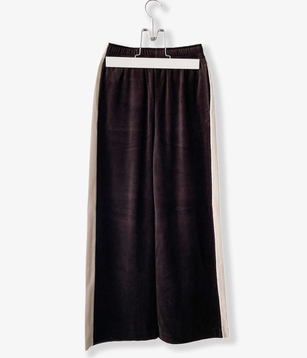 PHEENY/COTTON VELOURS SIDE STRIPE GATHERED PANTS(BROWN)