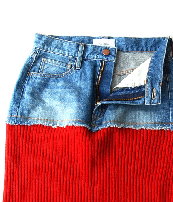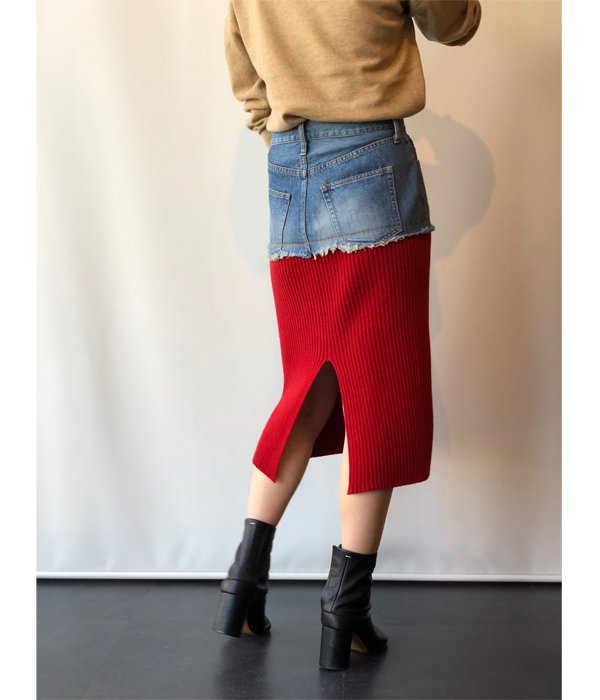 PHEENY/DENIM×RIB KNIT SKIRT(RED)