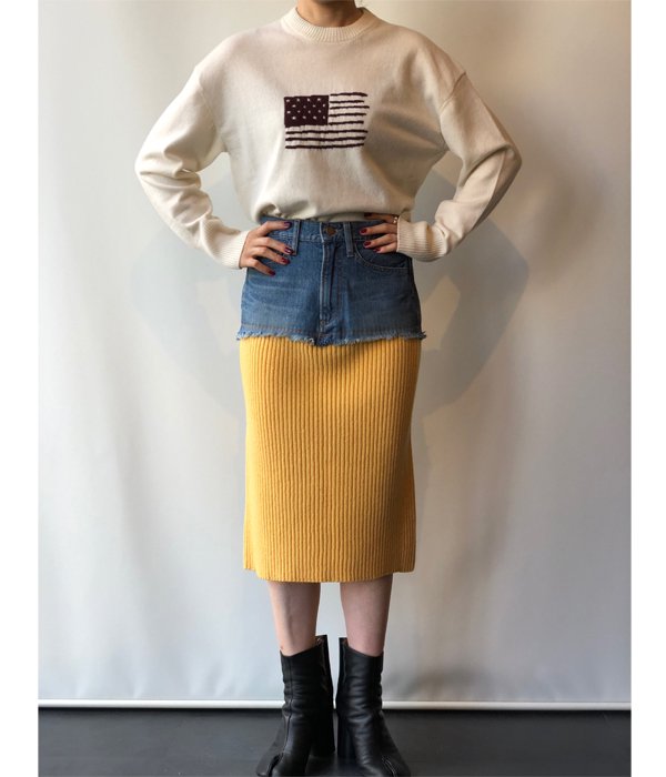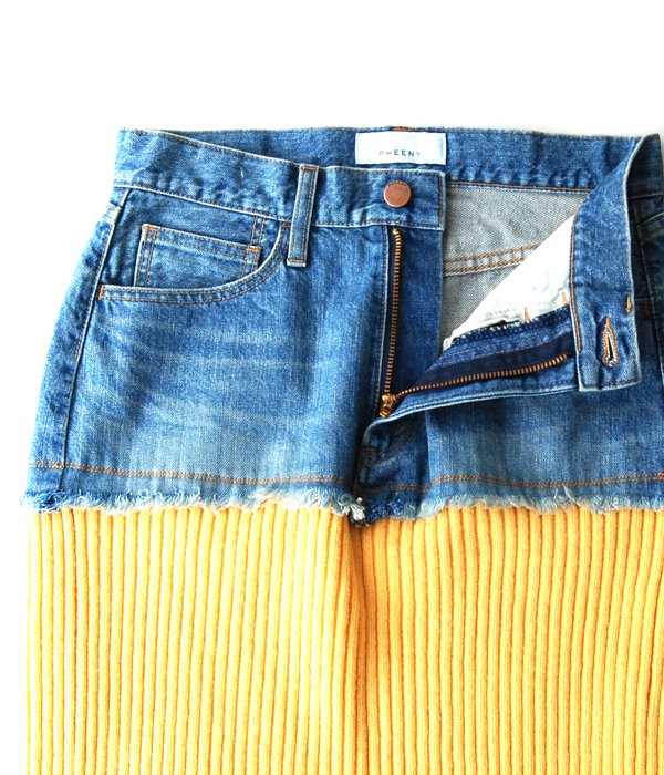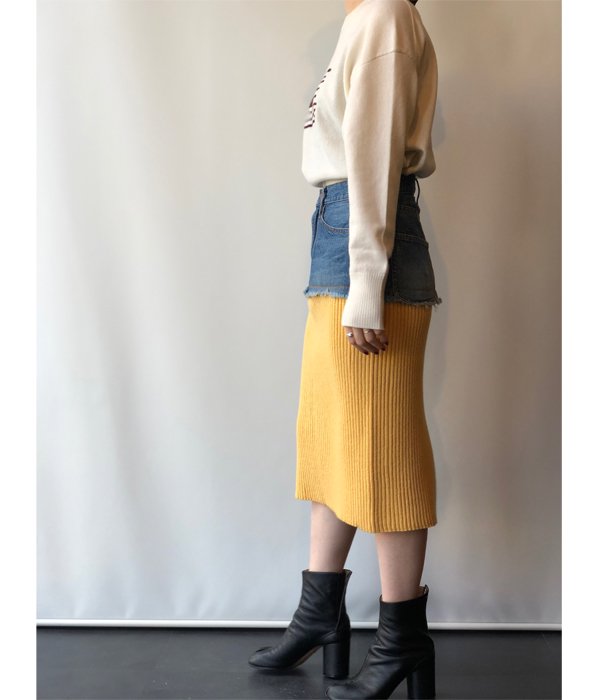 PHEENY/DENIM×RIB KNIT SKIRT(YELLOW)