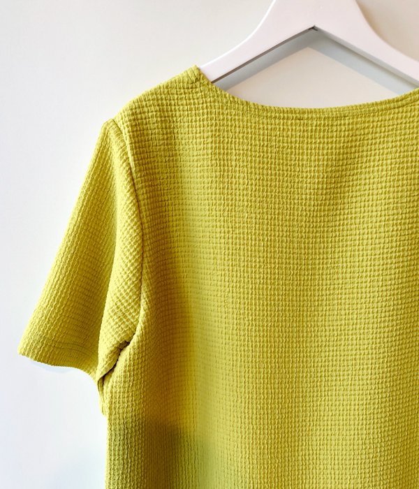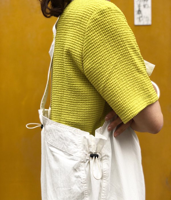 PHEENYからDOUBLE WEAVE DOBBY PULLOVER(LIME)が入荷しました。明るくフレッシュな色味のプルオーバートップス。ストレッチ性に富んだ生地表面の凸凹、きれいめな生地感とカッティングで、ゆったりとしたTシャツ型ながらカジュアルになりすぎず上品な印象。今シーズンは色×色の映えるコーディネートがおすすめです。