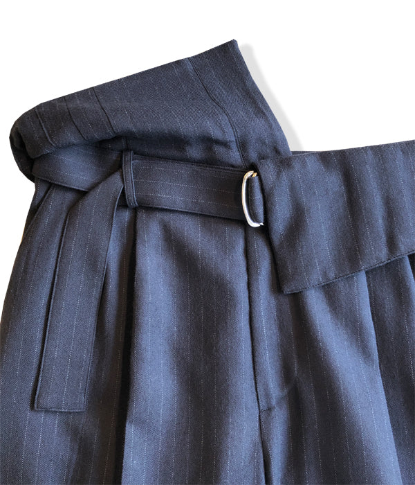 PHEENY/FLANNEL STRIPE BELTED SLACKS(NAVY)