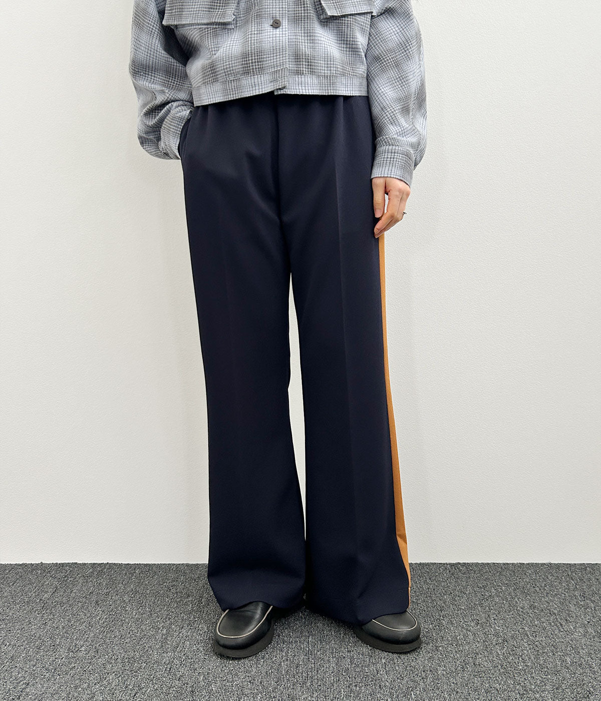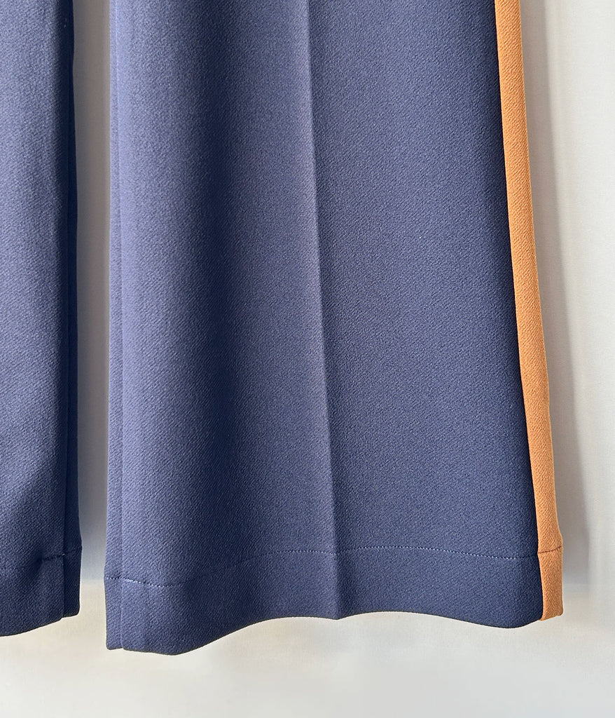 PHEENY/GEORGETTE KERSEY SIDE-STRIPE FLARE PANTS(NAVY)