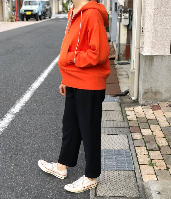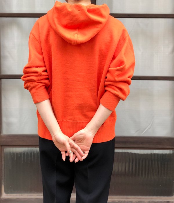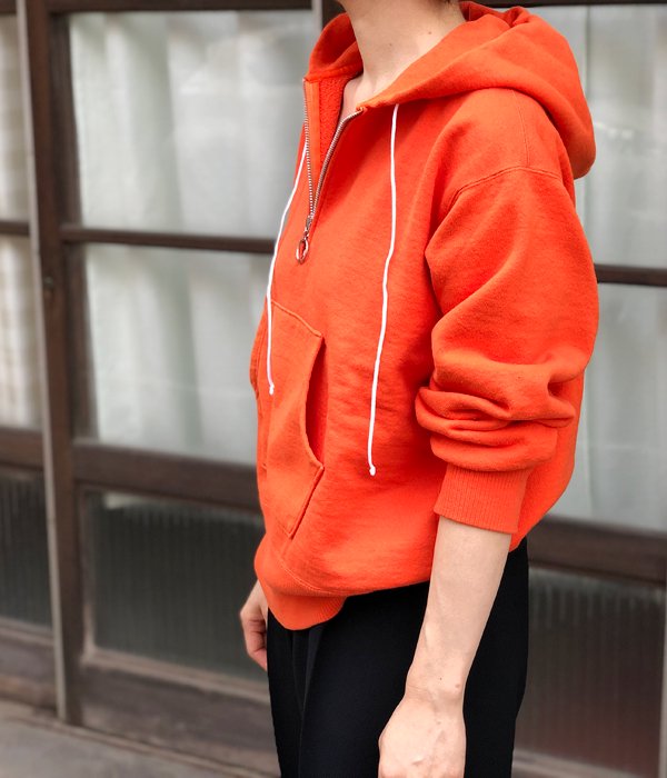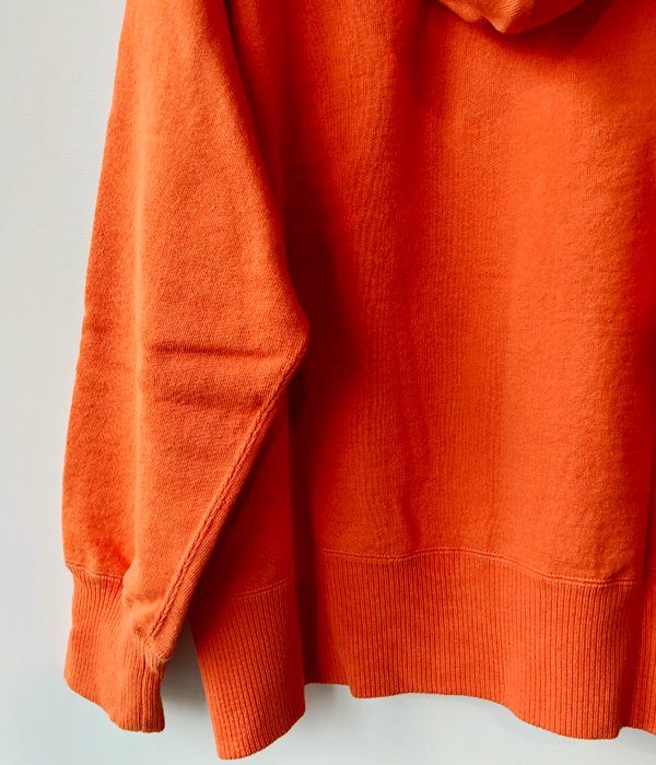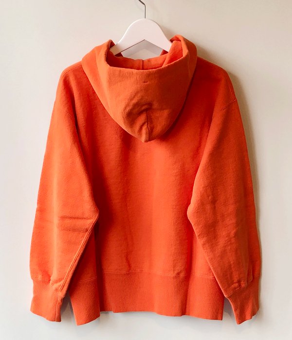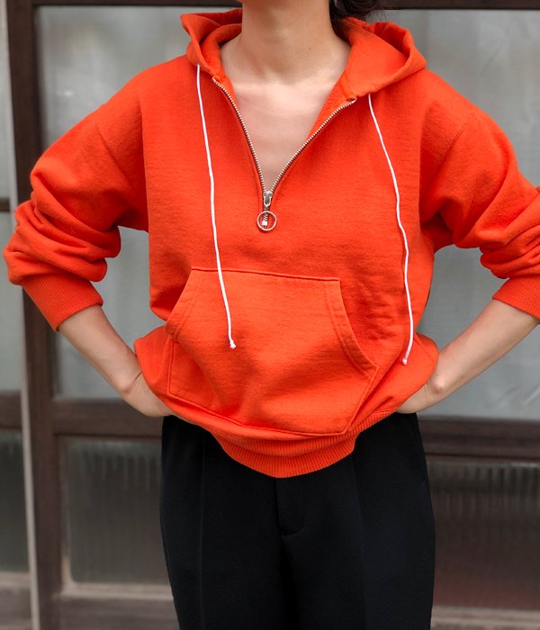 PHEENYからHALF ZIP PARKA(ORANGE)が入荷しました。1950~60年代にチャンピオンで使用されていた裏毛を再現した新型ハーフジップパーカー。裏起毛で温かみのある風合い、縫い目の仕様やフードの細いスピンドルにもこだわりヴィンテージスウェットのような仕上がりに。ジップを閉じてボーイズライクに着たり開けてデコルテを見せる女性らしい着こなしも◎