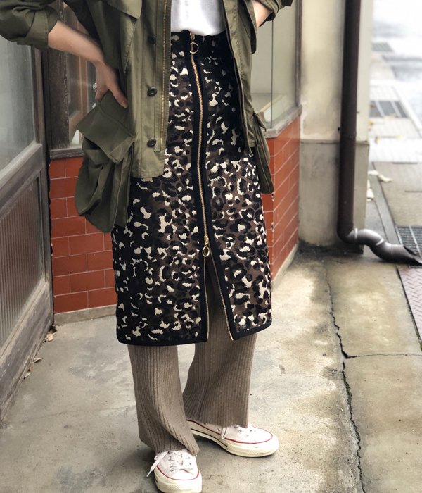 TOP > PHEENY > PHEENY/LEOPARD JACQUARD FRONT ZIP SKIRT(LEOPARD)