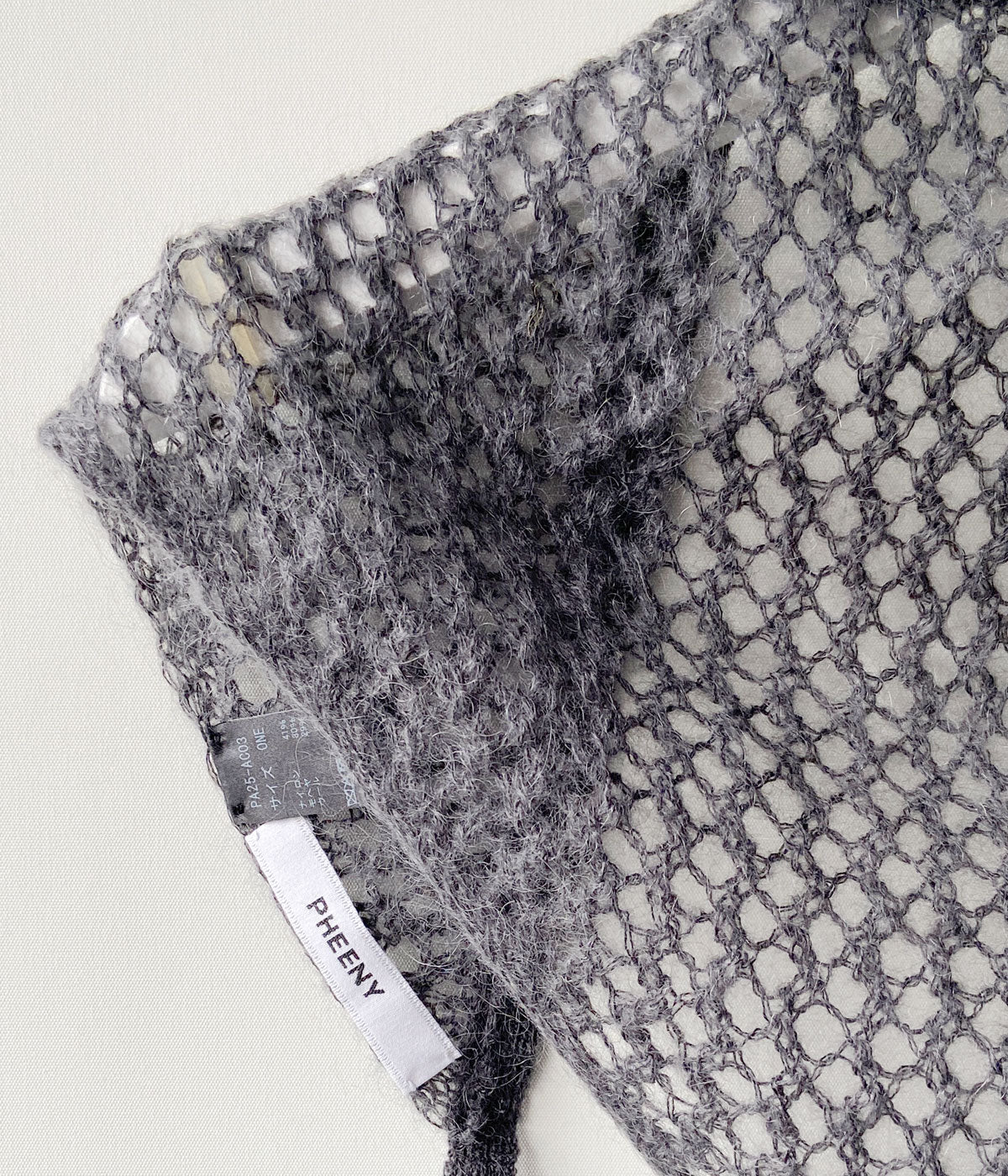 PHEENYからMOHAIR MESH BABUSHKAが入荷しました。ヘッドアクセサリーとしてコーディネートのアクセントになるバブーシュカ。首元につけて付け襟風にもアレンジが出来、ひとつで様々なスタイリングを楽しめるアイテムです。モヘアの光沢感とハリ感がありながらも柔らかな肌触りが特徴。