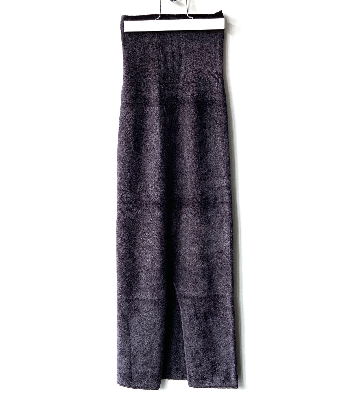 HEENYからMOLE YARN WHOLEGARMENT LONG SKIRTが入荷しました。縫い目が無いホールガーメントのロングスカート。ウエストリブを伸ばしてビスチェ風に着たり、折り返してウエスト位置を自由に調節したり、2WAYで楽しめる一着です。伸縮性が高く、柔らかさと光沢感が特徴。