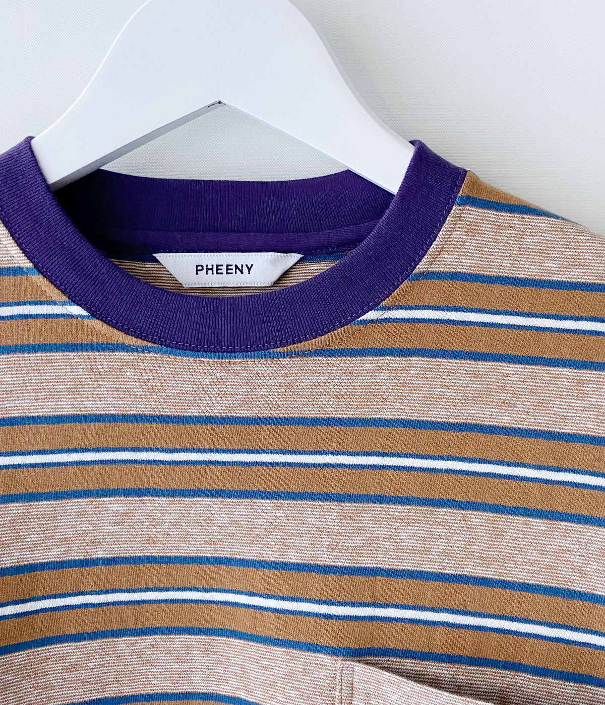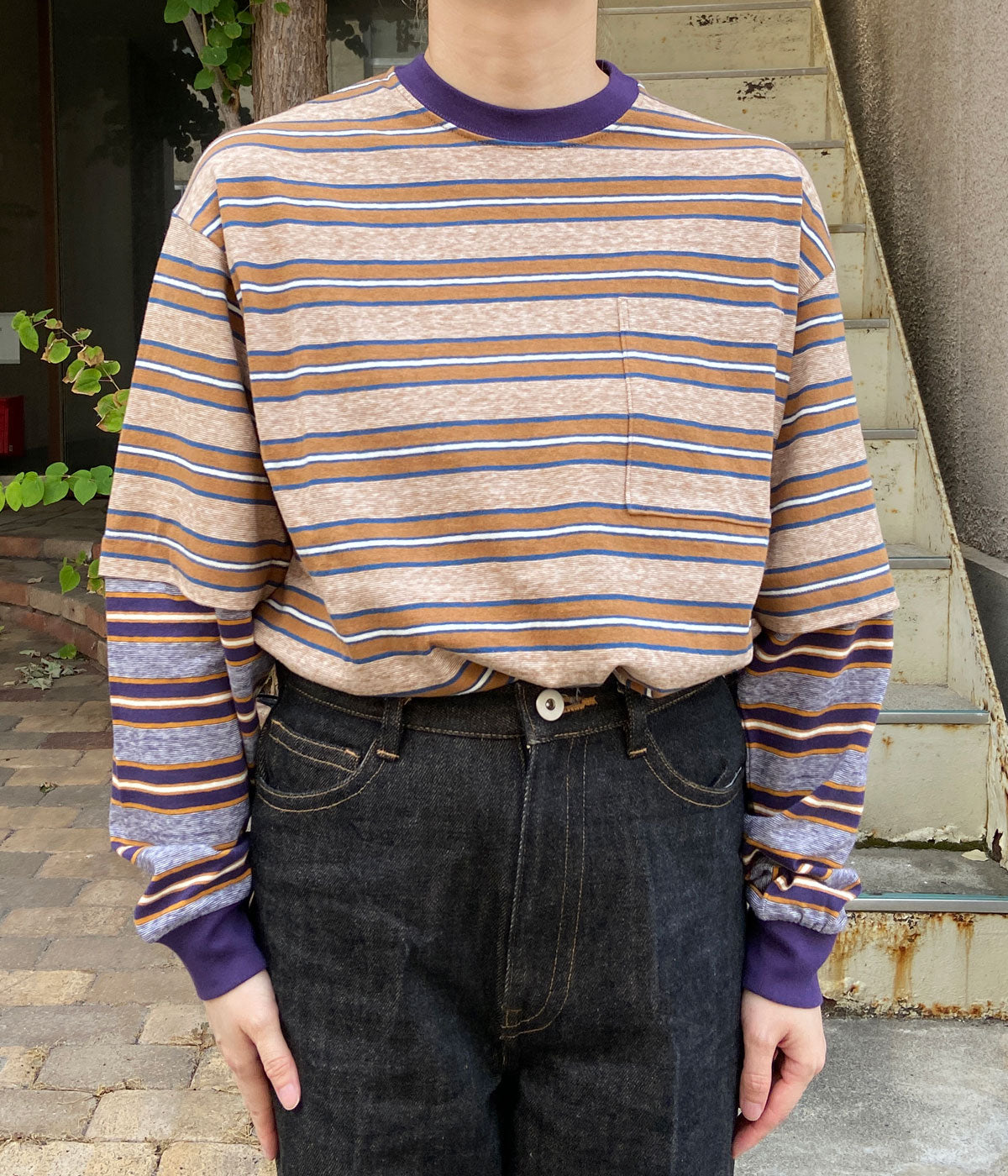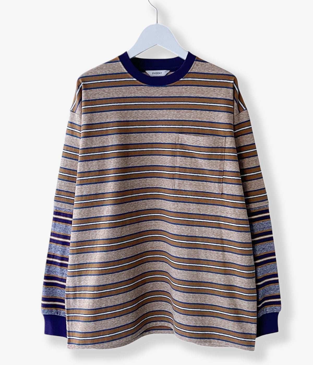 PHEENYからMULTI BORDER LAYERED L/Sが入荷しました。リラックス感のあるボクシーなシルエットのロンT。レイヤード風の袖ディテールがポイントの一着です。70年代を彷彿とさせるヴィンテージライクなボーダーでリラックスしたコーディネートに最適です。