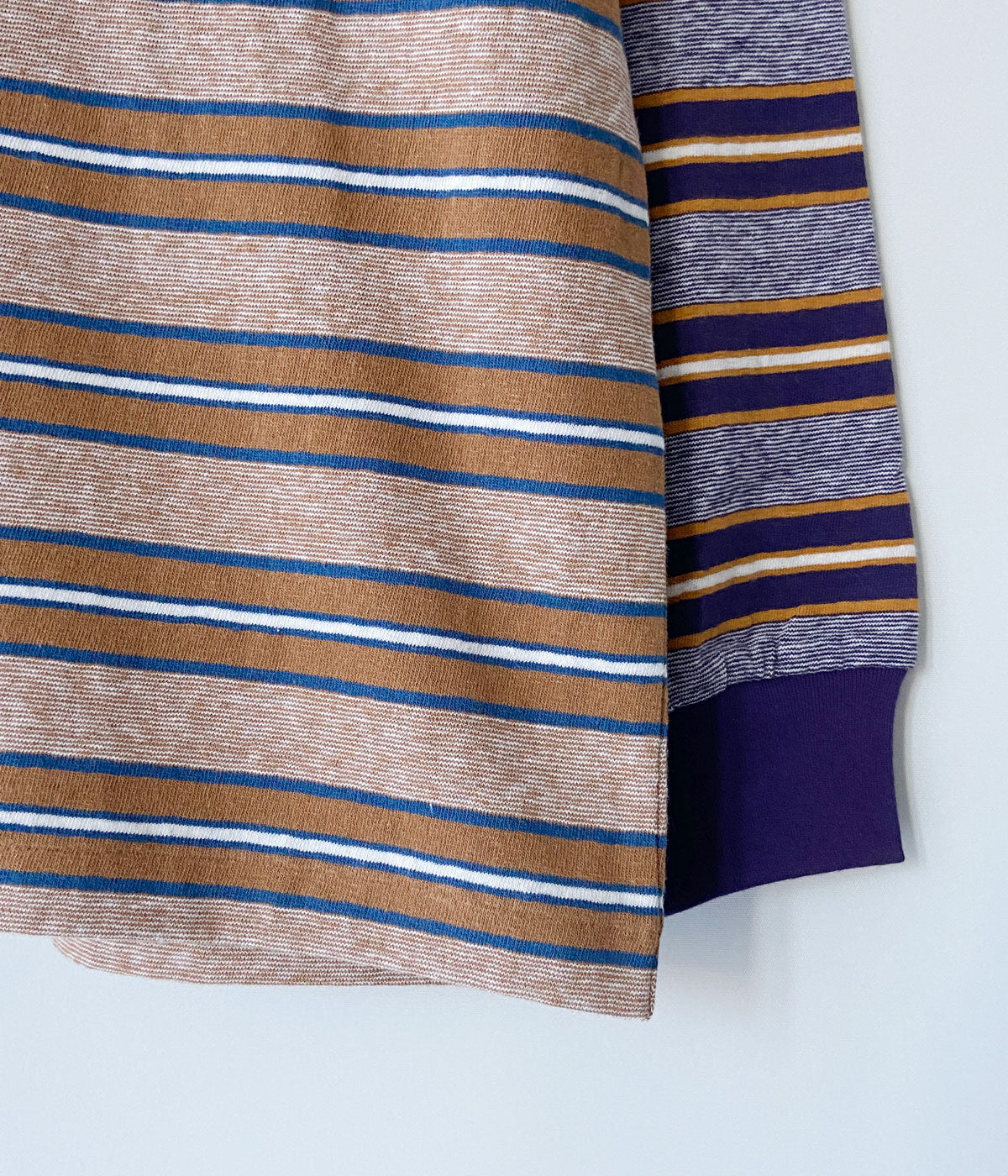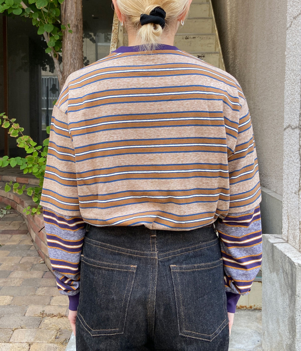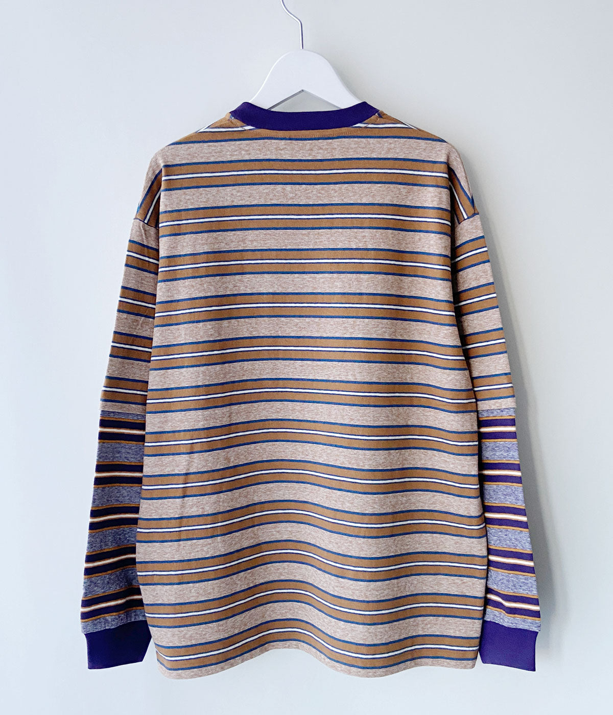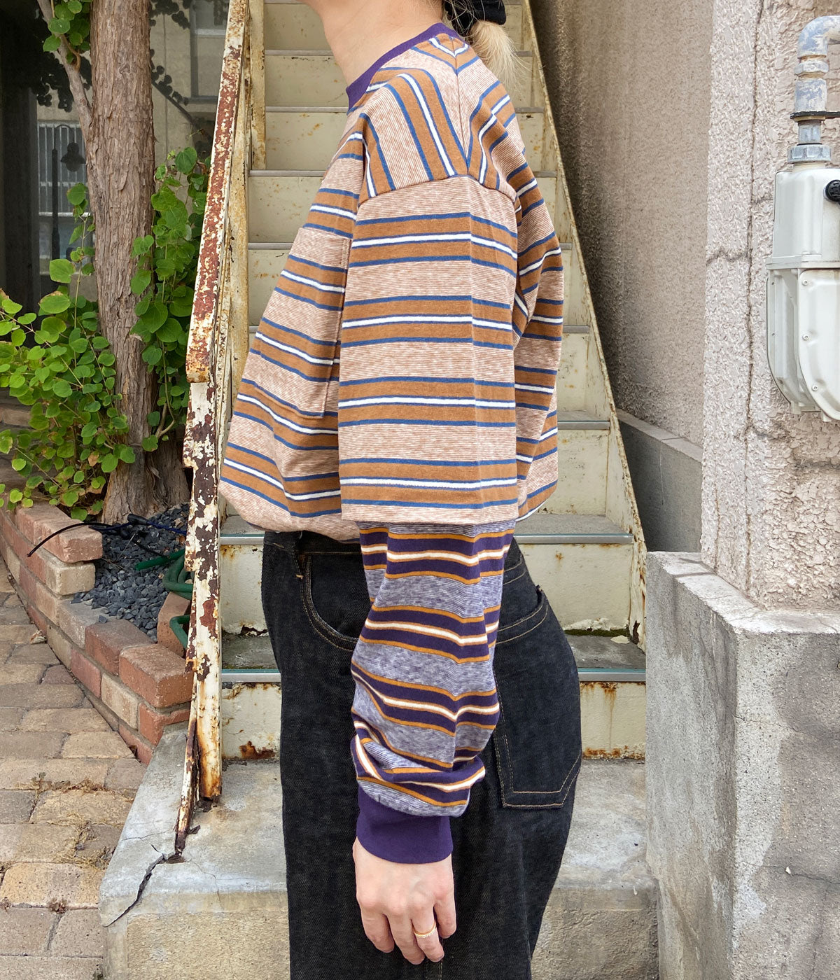 PHEENYからMULTI BORDER LAYERED L/Sが入荷しました。リラックス感のあるボクシーなシルエットのロンT。レイヤード風の袖ディテールがポイントの一着です。70年代を彷彿とさせるヴィンテージライクなボーダーでリラックスしたコーディネートに最適です。