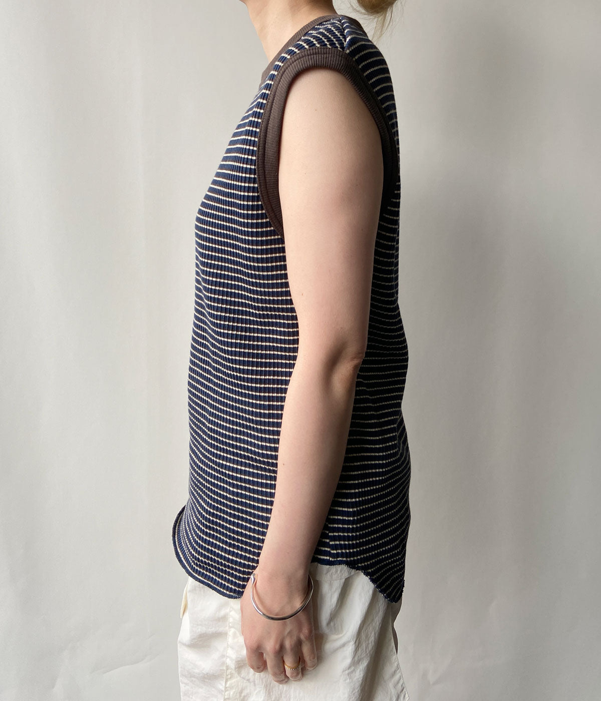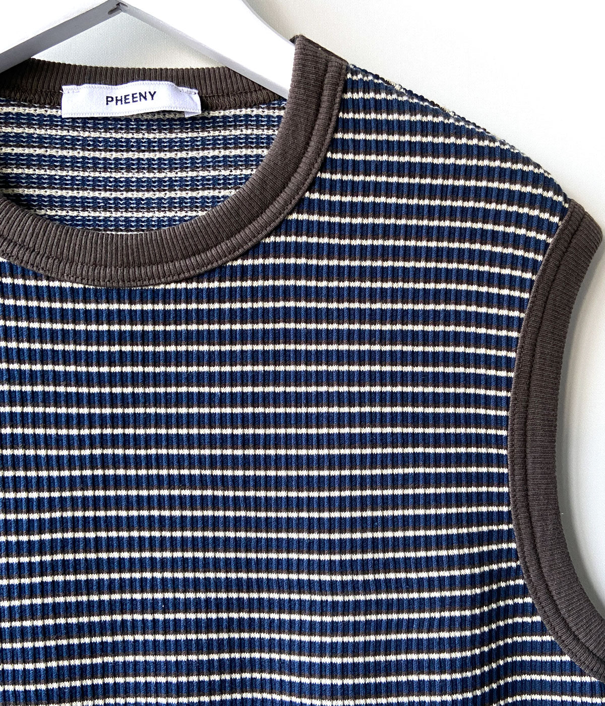 PHEENYからMULTI BORDER N/Sが入荷しました。配色がポイントのマルチボーダートップス。コンパクトなシルエットでワイドボトムにも合わせやすいバランス。ジャガード機で編んだ凹凸感のあるテレコライクなオリジナルボーダー素材。表情のある生地に仕上がっています。
