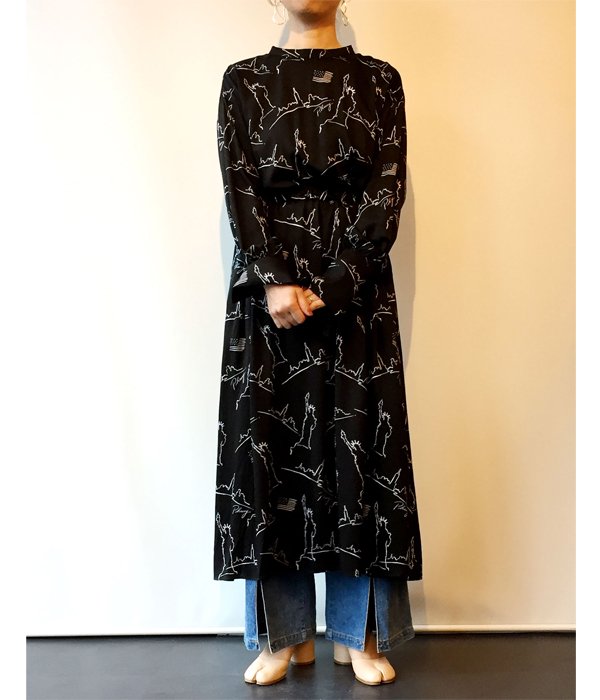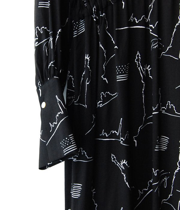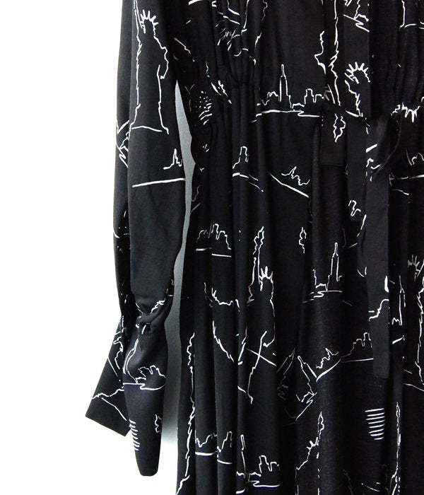 PHEENY/NYC PRINTED BACK OPEN DRESS(BLACK)