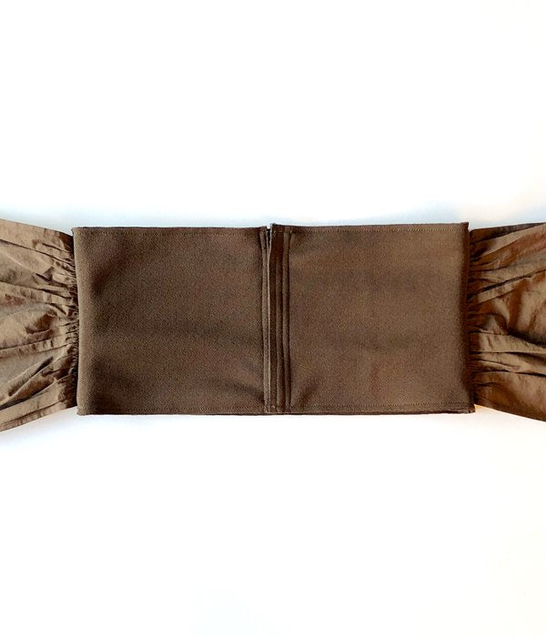 PHEENYからNYLON COTTON GROSGRAIN SASH BELTが入荷しました。アムンゼンというカットソー生地の太幅ベルトにグログラン生地を挟み込んだサッシュベルト。リボンをウエストで結んでベルトの様に、ワンショルダーの様に肩掛けしてトップスの様にアレンジしたり。自由な発想でコーディネートにプラス出来る楽しいITEMです。