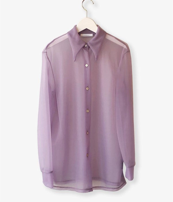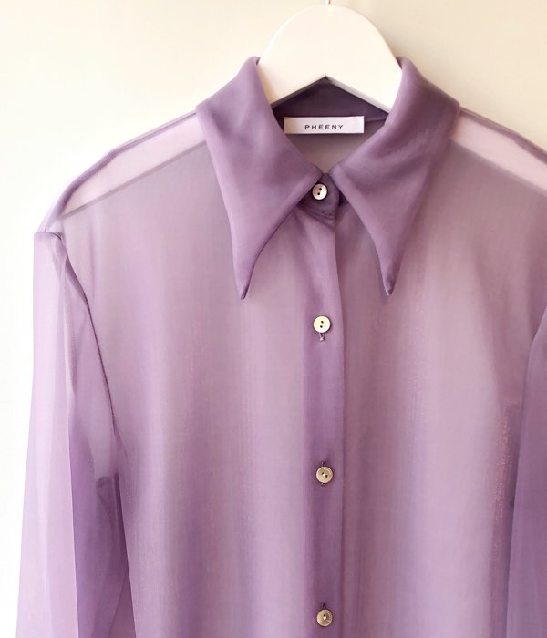 PHEENYからNYLON SMOOTH SHIRTが入荷しました。70'sのようなロングポイントの衿が特徴のシャツ。モノフィラメントナイロンを使用した新感覚のスムース素材は半透明で生地の厚さがありドレープ性にも優れています。透け感が新鮮でモードな雰囲気の着こなしが楽しめます。
