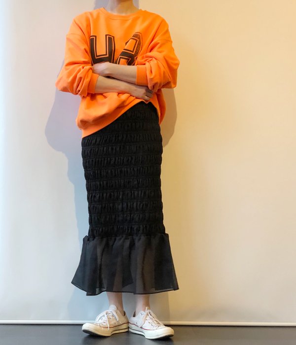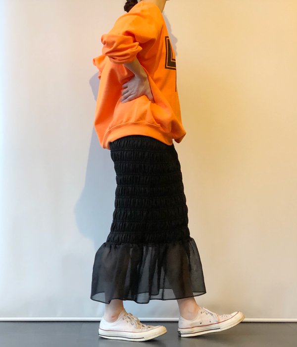 PHEENY/ORGANDIE SHIRRING SKIRT(BLACK)