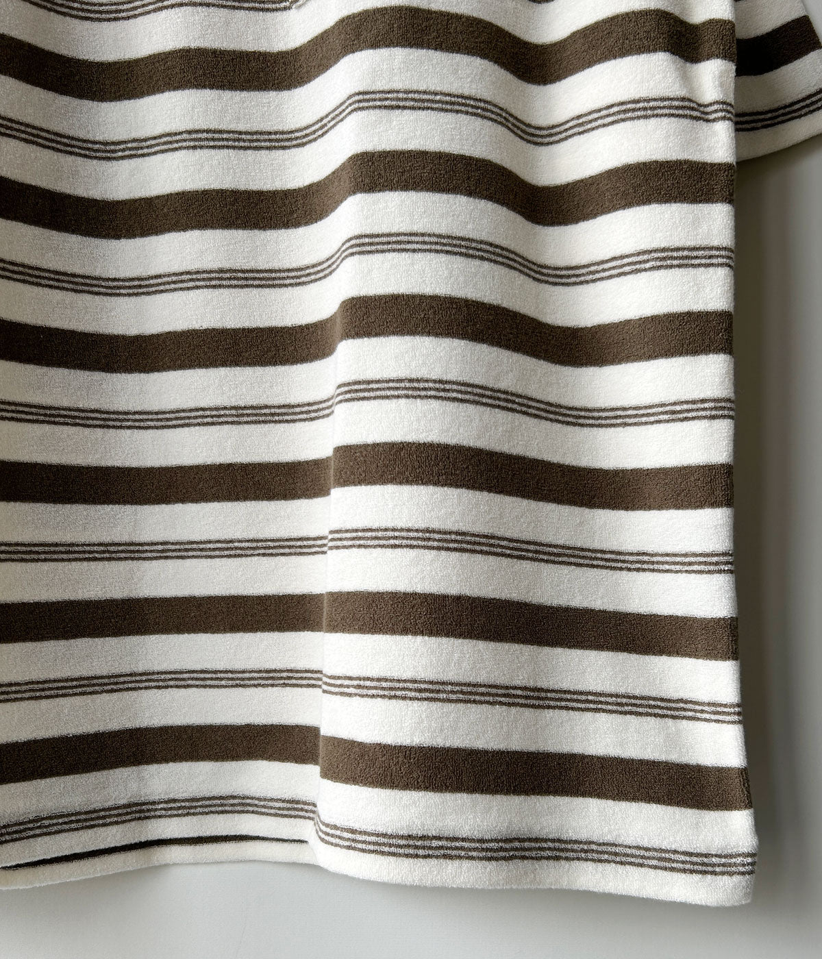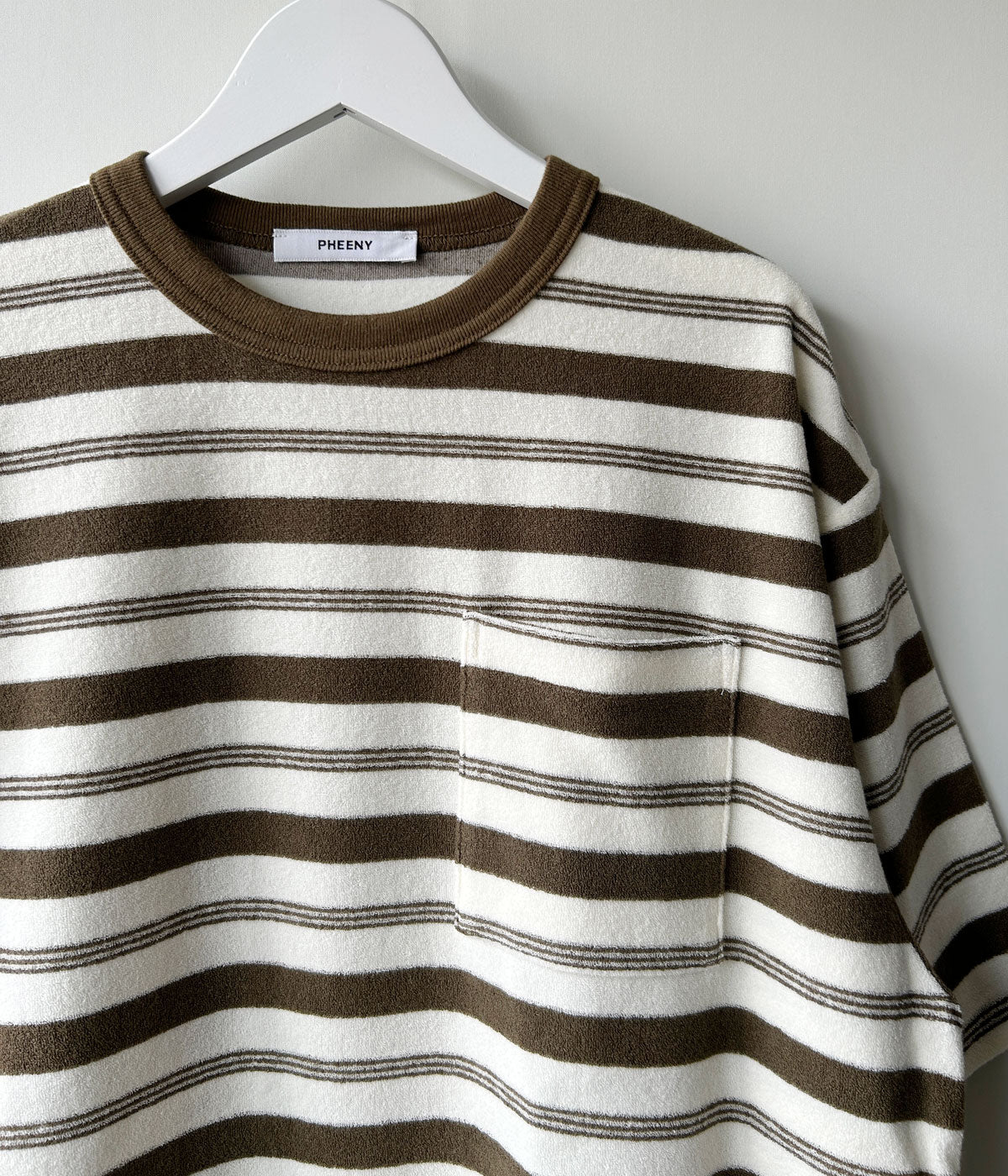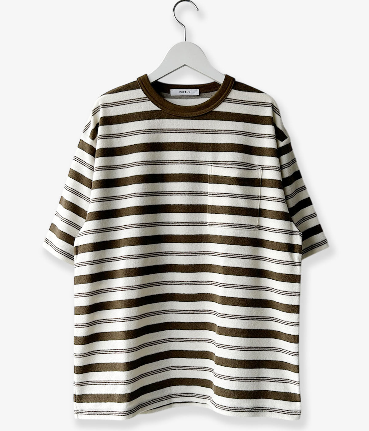 PHEENYからPILE BODER POCKET TEEが入荷しました。国内でも数少ない編み機で編み立てた、希少性のあるオリジナルパイルボーダーTシャツ。パイルを短く度目を詰めることで、カジュアルすぎず洗練された印象。軽やかでドライタッチが際立つ夏にぴったりの心地いい素材感です。程よい抜け感があり、シンプルながらも雰囲気のあるスタイルに。