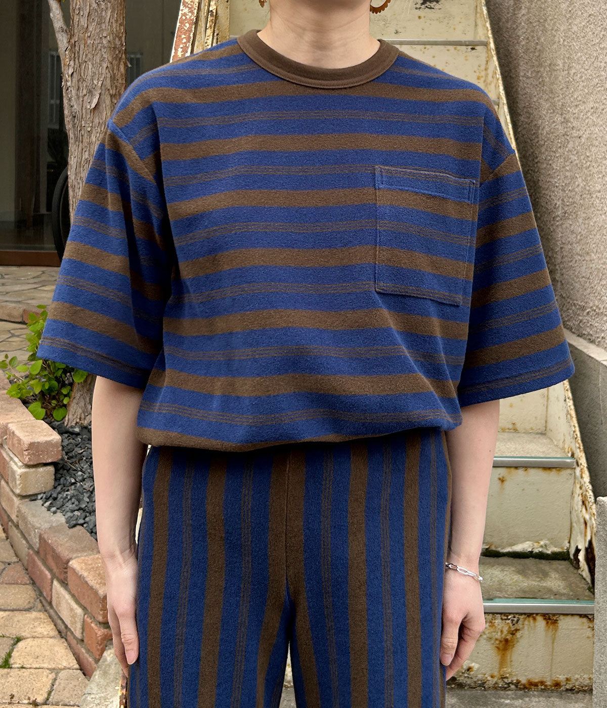 PHEENYからPILE BODER POCKET TEEが入荷しました。国内でも数少ない編み機で編み立てた、希少性のあるオリジナルパイルボーダーTシャツ。パイルを短く度目を詰めることで、カジュアルすぎず洗練された印象。軽やかでドライタッチが際立つ夏にぴったりの心地いい素材感です。程よい抜け感があり、シンプルながらも雰囲気のあるスタイルに。