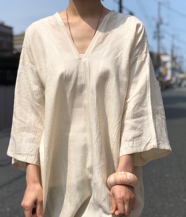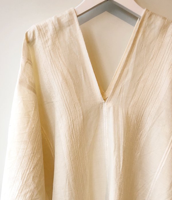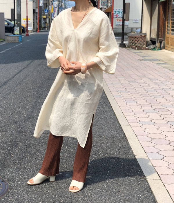 PHEENYからRAMIE RAYON MOLE PULLOVER DRESS(IVORY)が入荷しました。リネン特有のシャリ感とドレープ、表面の凸凹感が特徴の麻レーヨン生地を使用のプルオーバードレス。心地良くざっくり羽織れるサイズ感で、暑い日にも快適に着用出来ます。リブパンツや箔リネンパンツとのコーディネートがおすすめです。