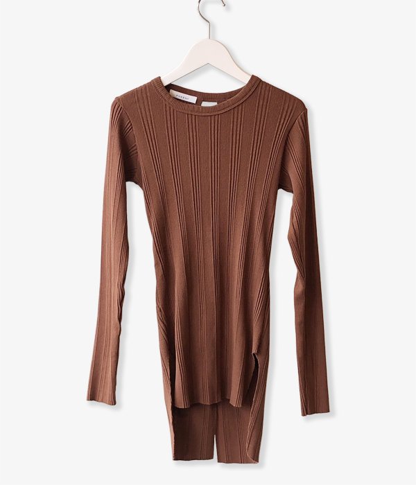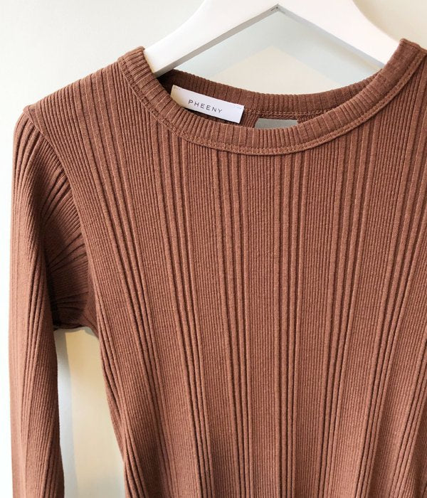 PHEENY/RANDOM RIB BACK DRAPE L/S(BROWN)