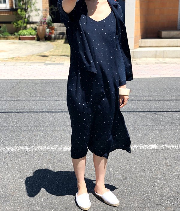 PHEENY/RAYON DOT CAMISOLE DRESS (NAVY)