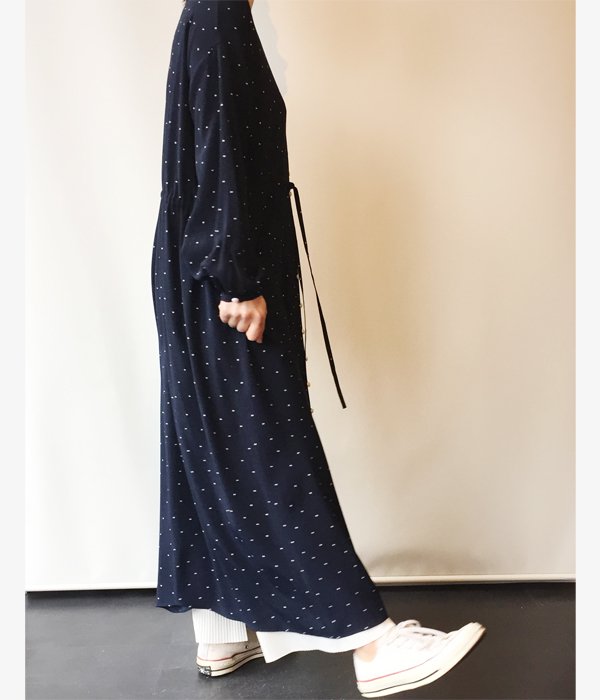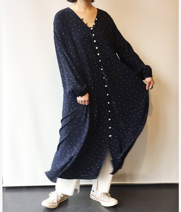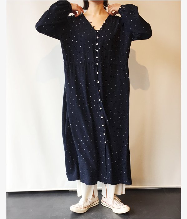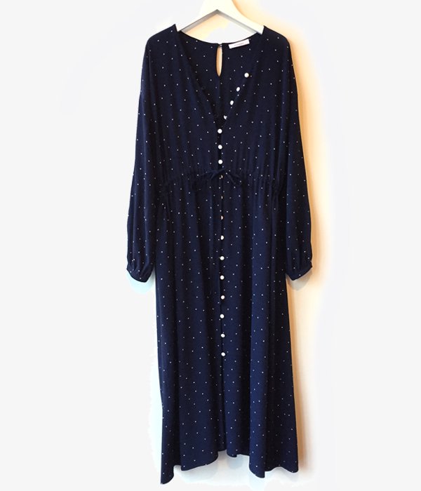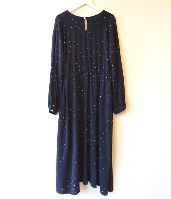 PHEENY/RAYON DOT L/S DRESS (NAVY)