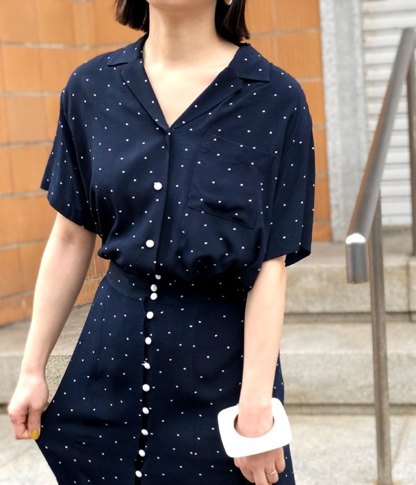 PHEENY/RAYON DOT S/S SHIRT (NAVY)