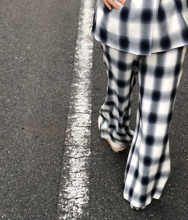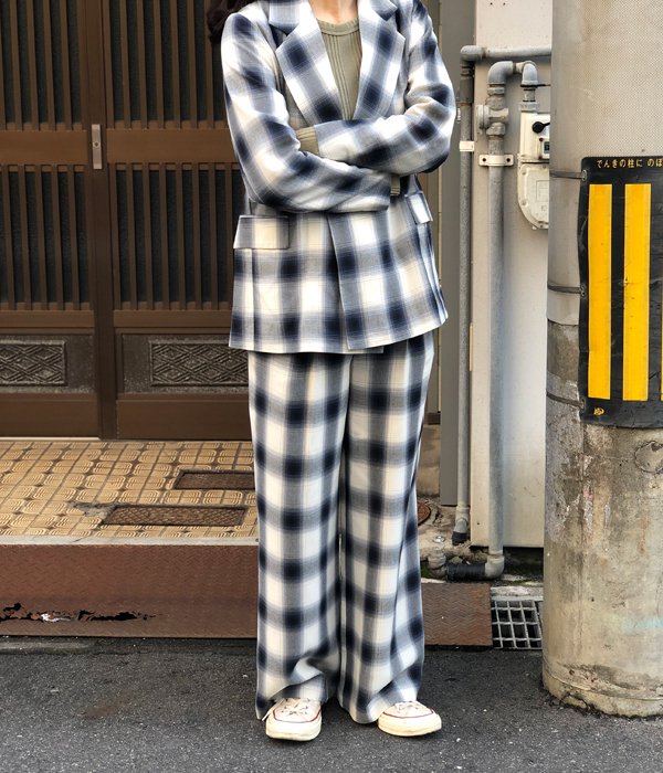 PHEENY/RAYON OMBRE CHECK 2TUCK SLACKS(BLUE)