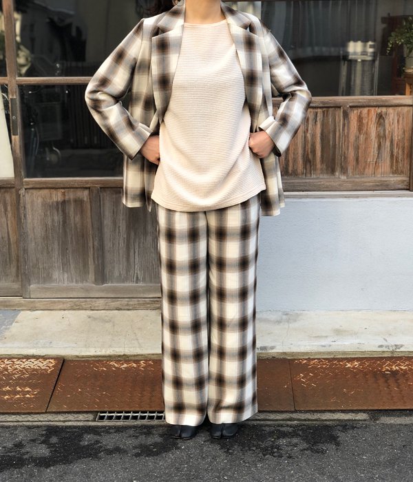 PHEENY/RAYON OMBRE CHECK 2TUCK SLACKS(BROWN)