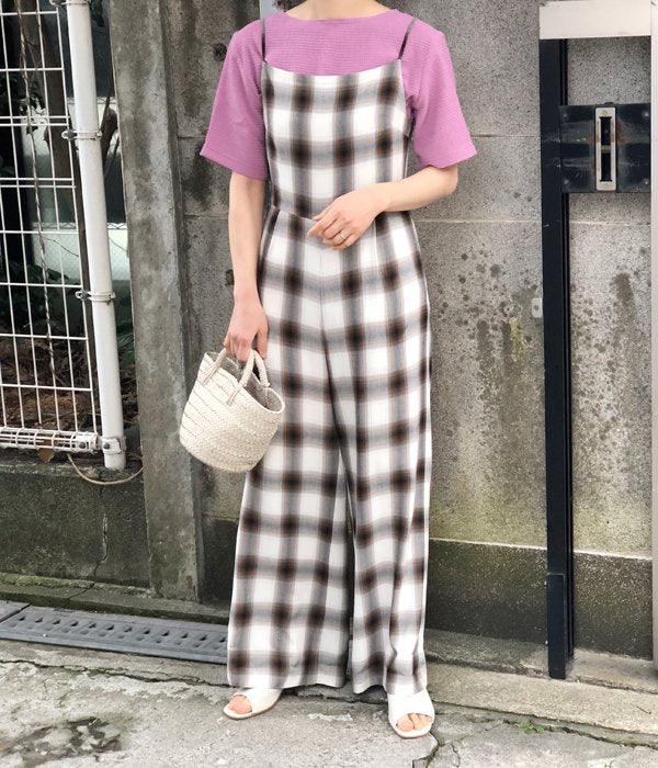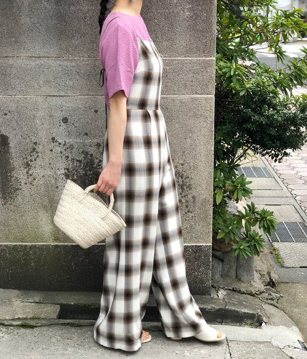 PHEENY/RAYON OMBRE CHECK ALL-IN-ONE(BROWN)