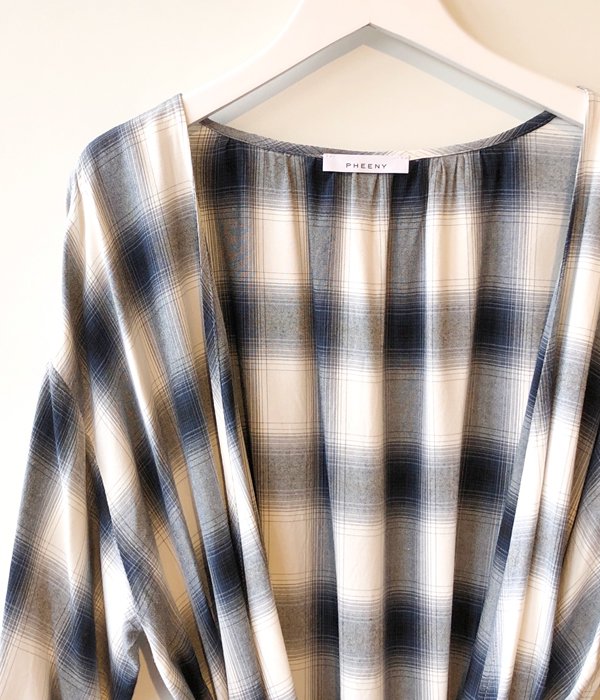 PHEENYからRAYON OMBRE CHECK CACHE-COEUR SHIRTが入荷しました。PHEENYのアイコンであるレーヨンオンブレチェックシリーズから新型のカシュクールシャツが登場。レーヨン独特の落ち感がありながらもしっかりとした生地感、春夏でも快適なアイスタッチの仕上がり。七分袖なので3シーズン着用可能となり、夏の強い紫外線や冷房対策にも役立ちます。