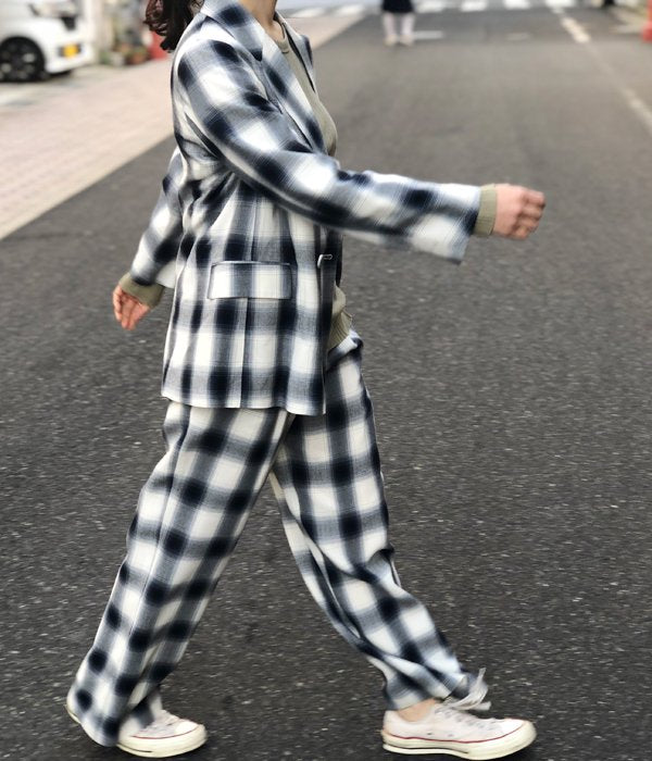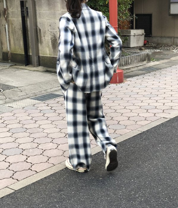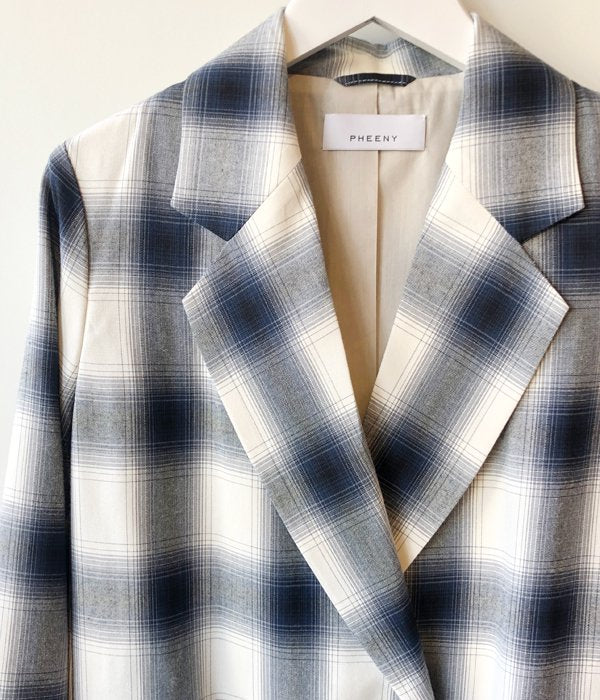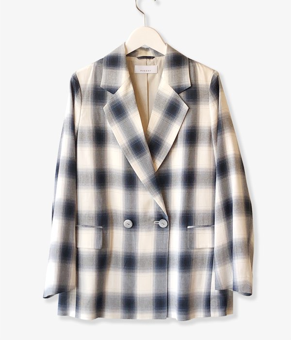 PHEENY/RAYON OMBRE CHECK DOUBLE-BREASTED JACKET(BLUE)
