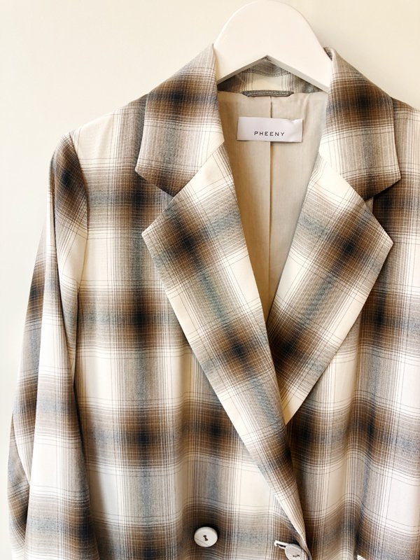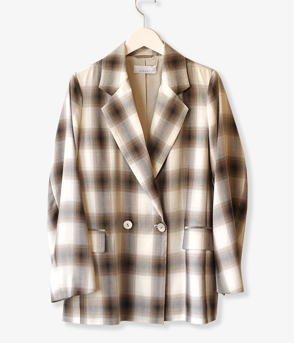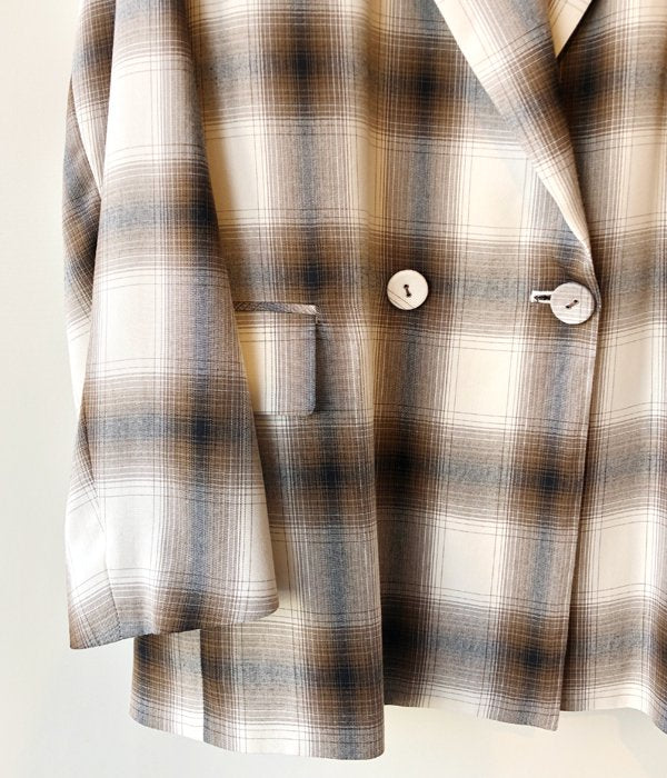 PHEENY/RAYON OMBRE CHECK DOUBLE-BREASTED JACKET(BROWN)