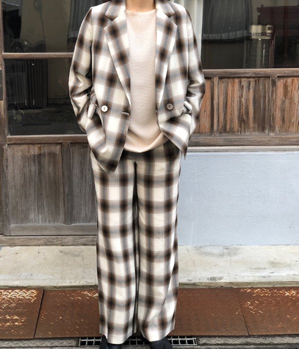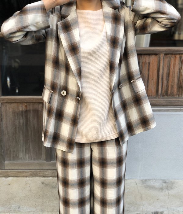 TOP > PHEENY > PHEENY/RAYON OMBRE CHECK DOUBLE-BREASTED JACKET(BROWN)