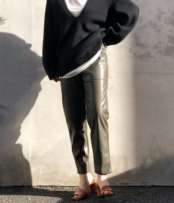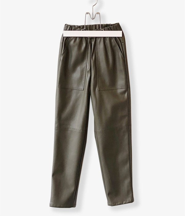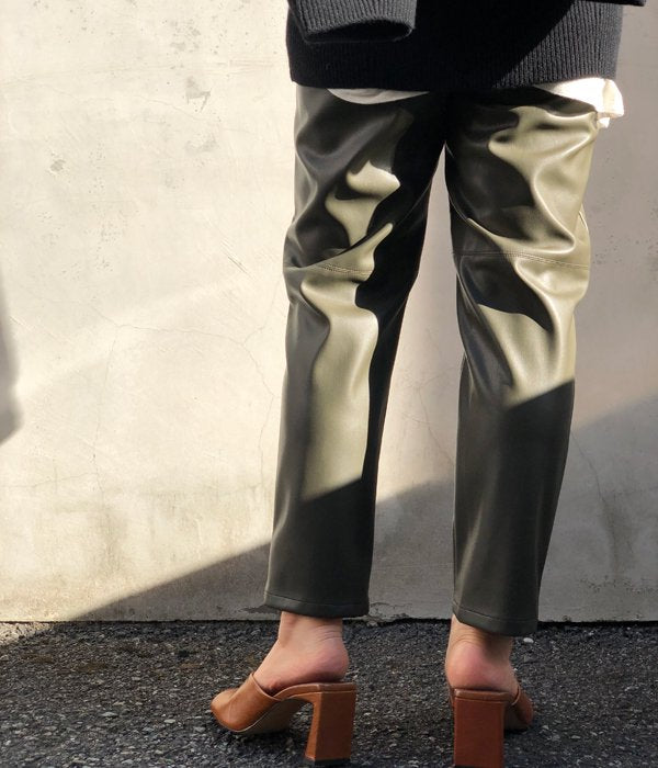 PHEENY/ROYAL FAKE LEATHER TAPERED EASY PANTS(OLIVE)