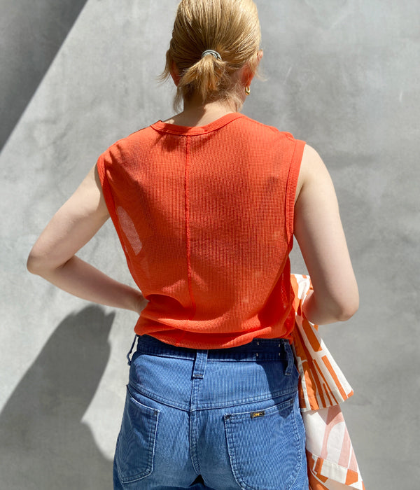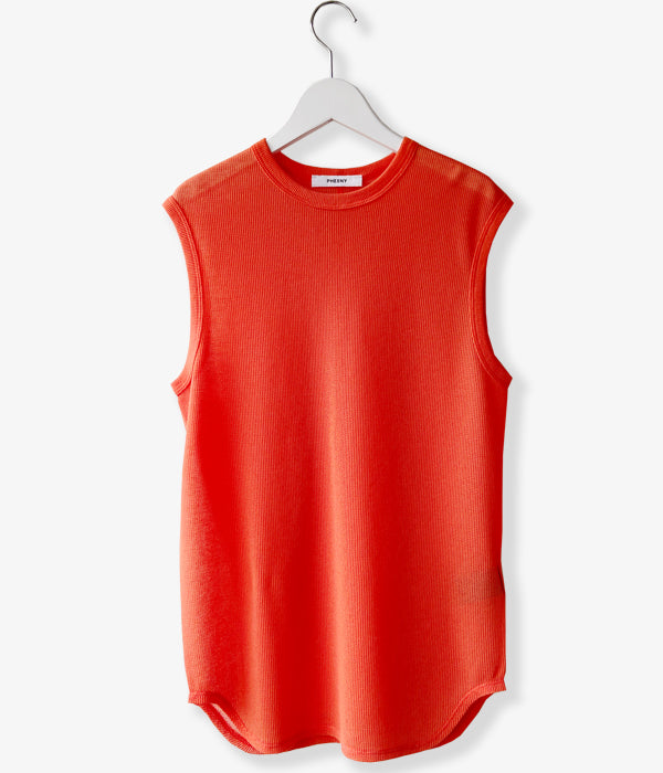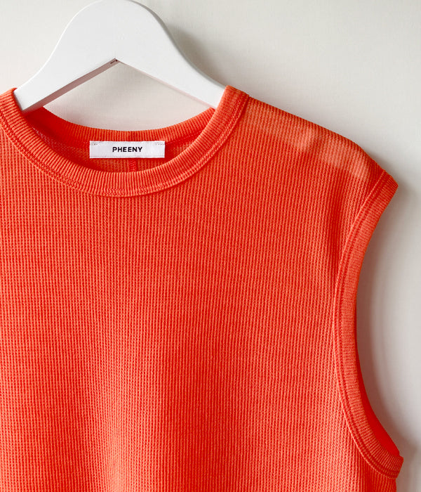 PHEENYからSEER WAFFLE N/Sが入荷しました。シアー感と凹凸のある生地のノースリーブ。肌の接着面が少なく、サラッとした着心地。アームホールを深めに設定し、抜け感のあるデザインで真夏にぴったりの1枚です。