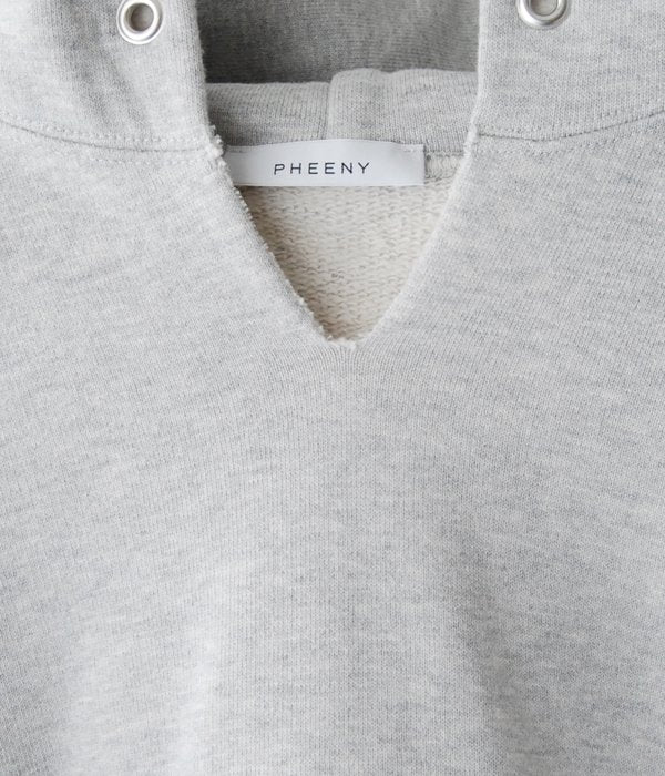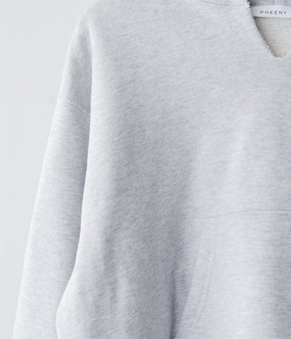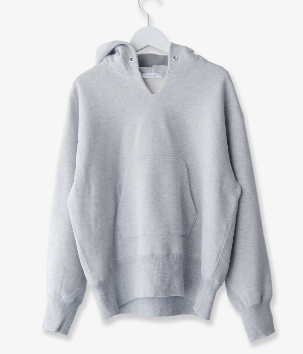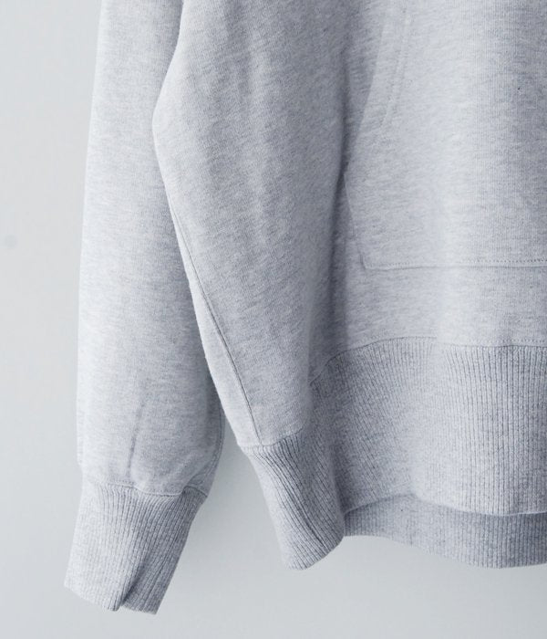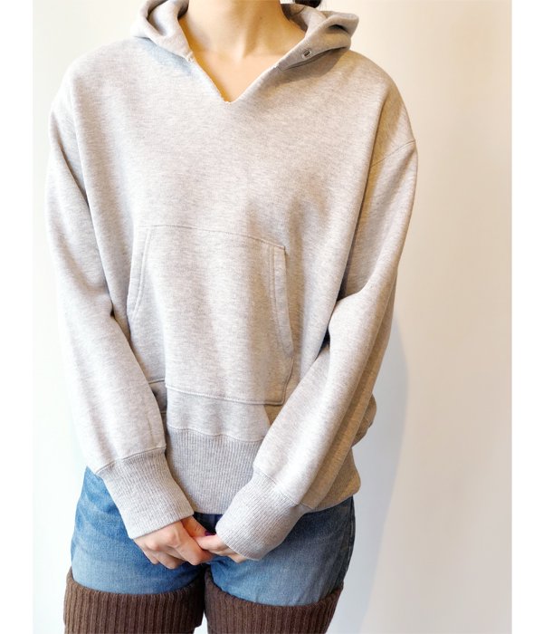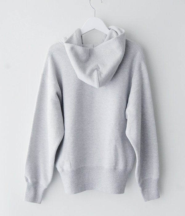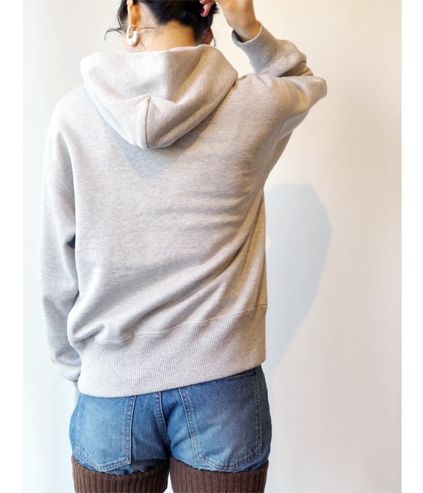 18春夏でも好評だったオリジナルの裏毛を使用し作られたパーカーを秋冬は10分袖にアップデート。ゆったりとしたシルエットながら衿ぐりのスリットで女性らしさをプラス。染色前に裏の起毛加工を施したり、フードのハトメやステッチ色にもこだわり、ヴィンテージスウェットのような風合いに仕上げています。