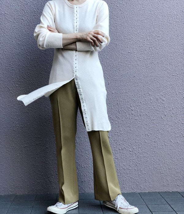 PHEENYからTWILL HIGH WAIST FLARED SLACKS(CAMEL)が入荷しました。ドライタッチで落ち感のある肉厚なツイルを使用の定番スラックス。ハイウエストとフレアシルエットで脚長効果は抜群。フロントのジッパーもデザインのポイント。他にはない絶妙なニュアンスのキャメルとブルー、実用的なブラックの3色展開。長く使える一本となっています。