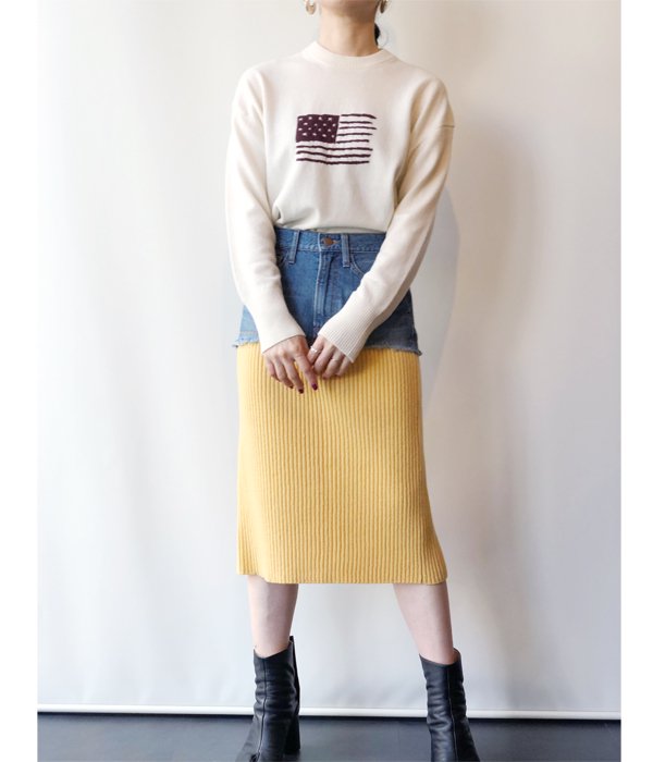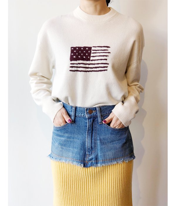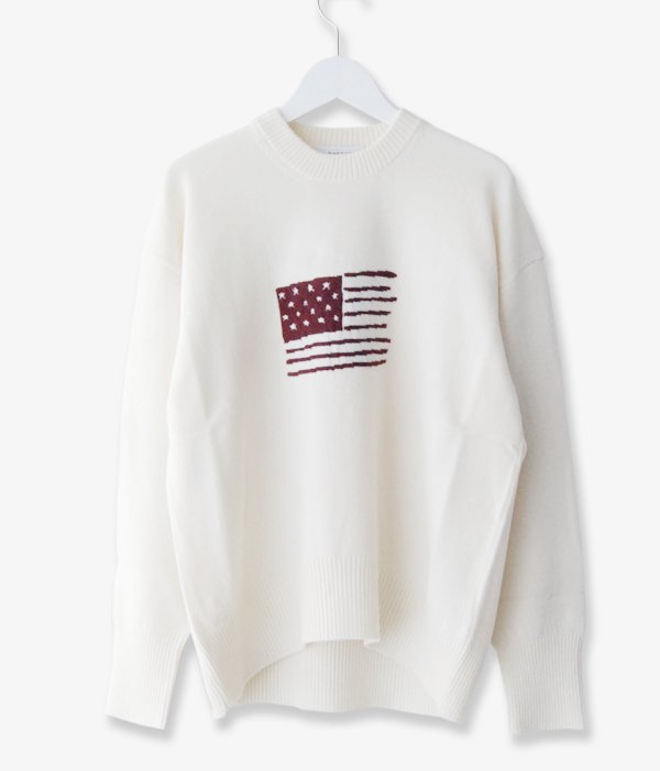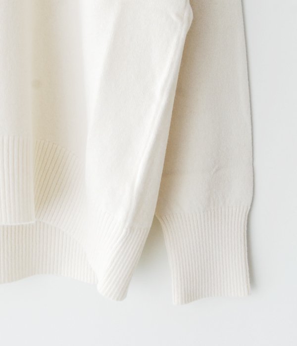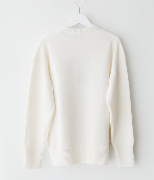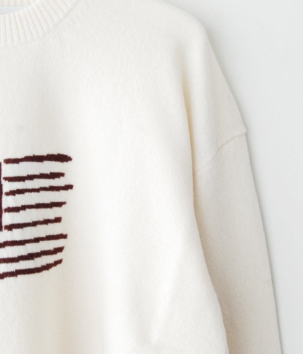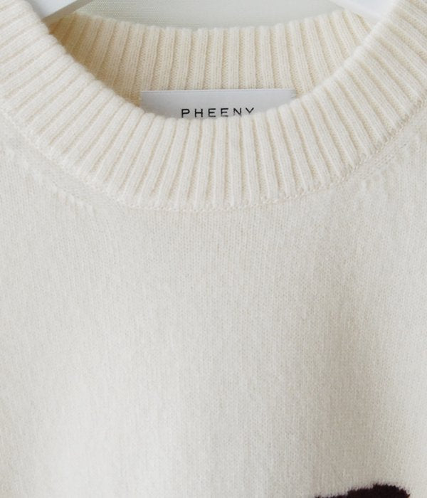 ウールとカシミヤで編まれたハイゲージニットプルオーバー。ゆったりリラックスしたシルエットでラウンドされている前裾が1枚で着てもニュアンスを出してくれます。PHEENYらしくPOPにデフォルメされた柄はコーディネートの主役に。