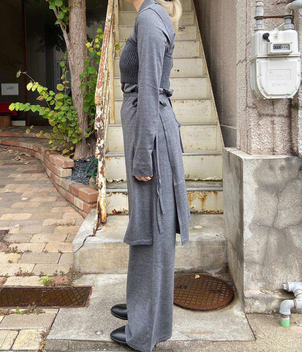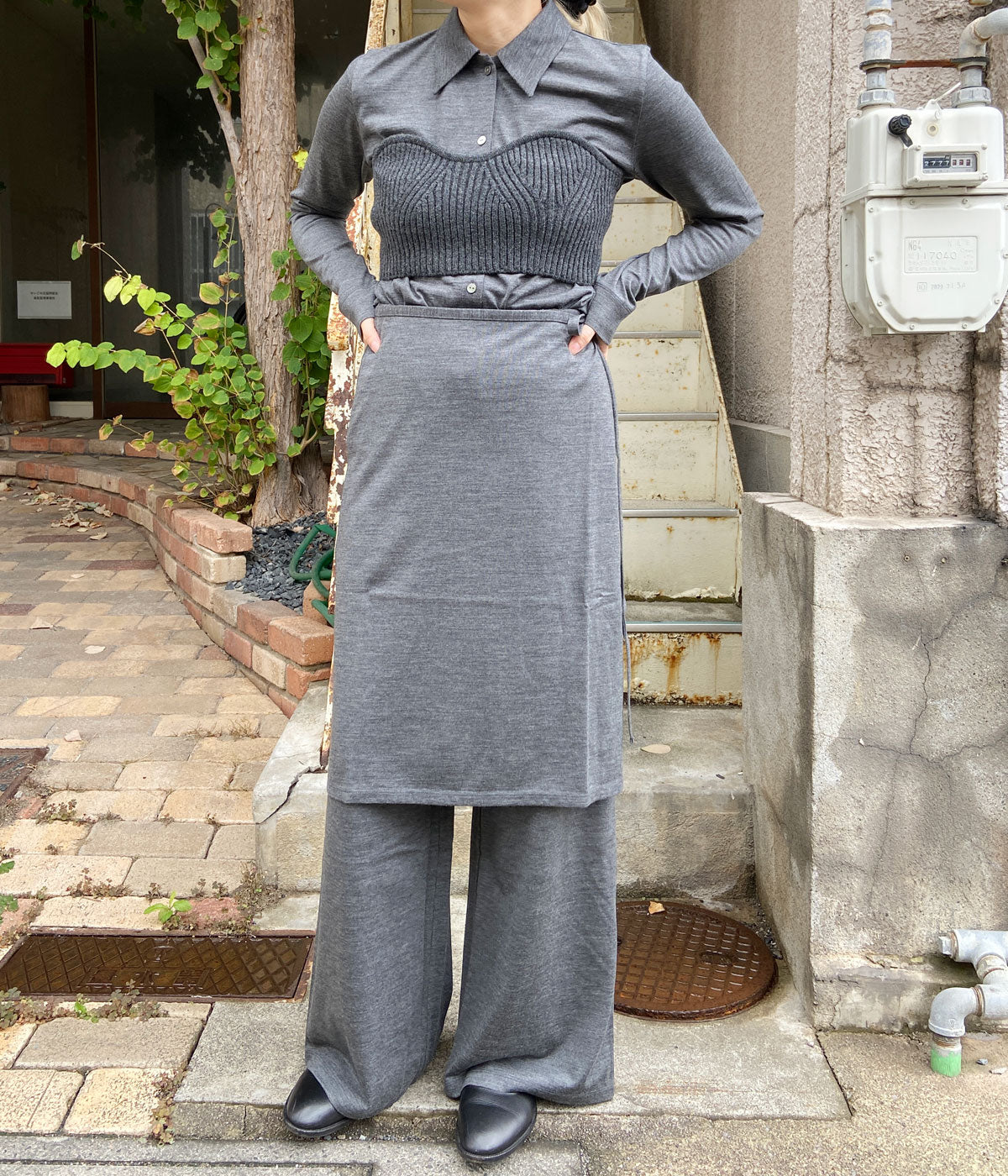 PHEENY/WOOL JERSEY LAYERED PANTS(GRAY)
