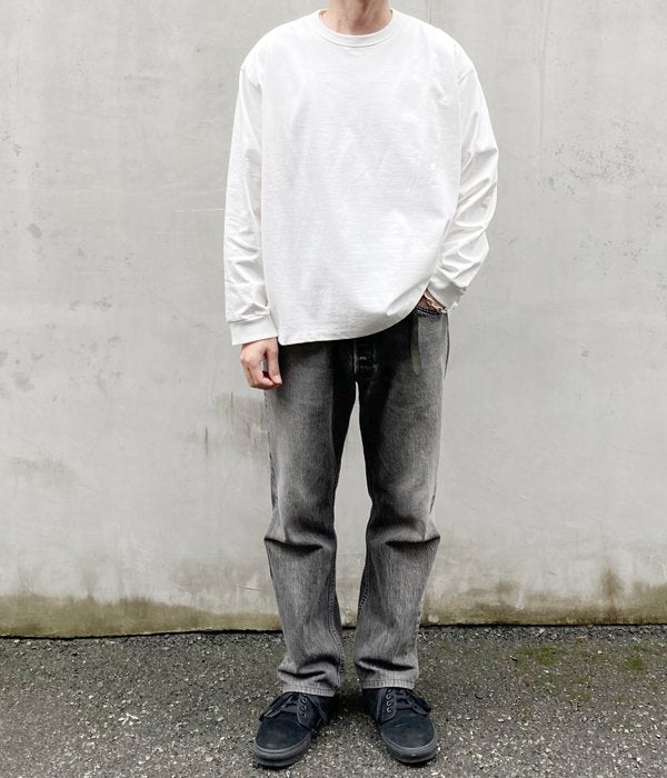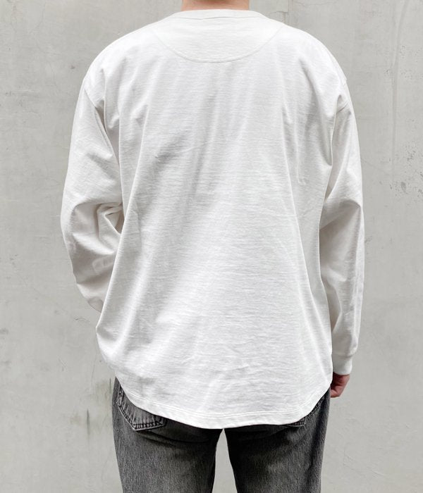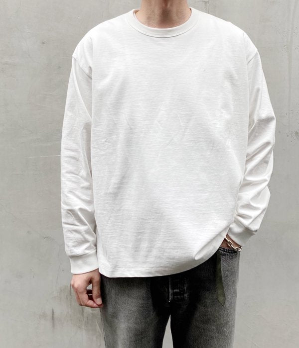 POLYPLOIDから、OVERSIZE LONGSLEEVE Cが入荷しました。ドライな質感の厚手のコットンを使用したLS T-SHIRT。オーバーサイズ仕上げのサイズ感と、ラウンド状の裾のラインが動きのあるシルエットを生み出します。