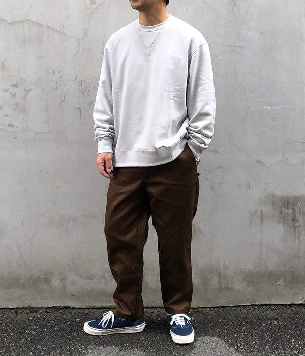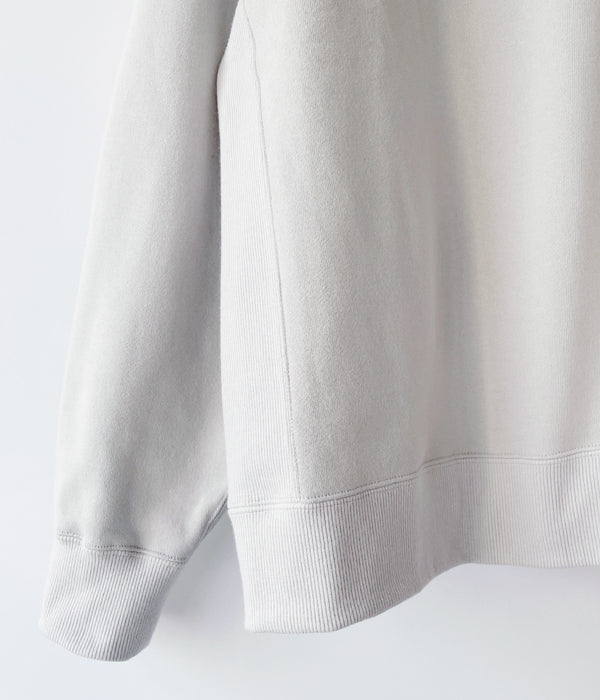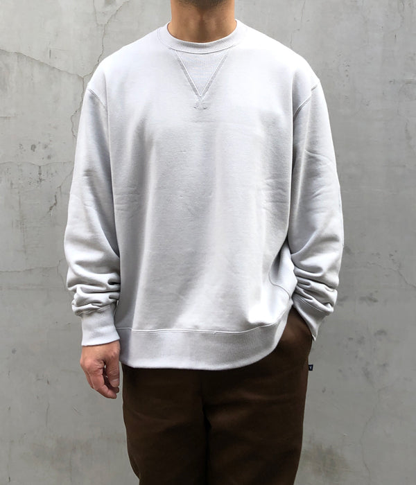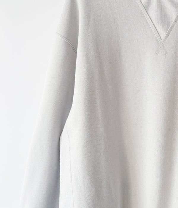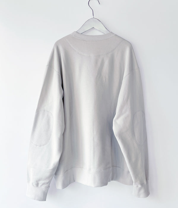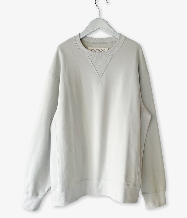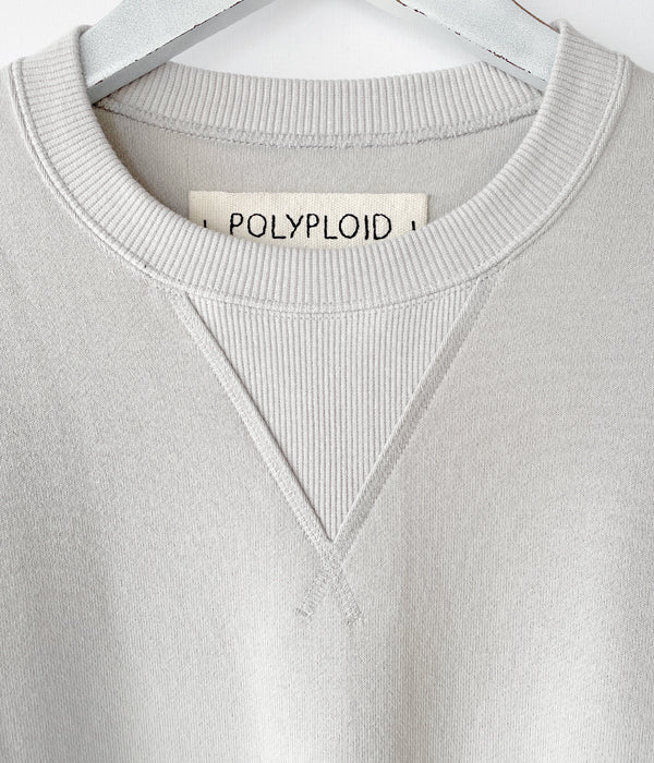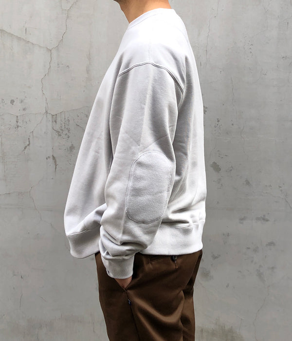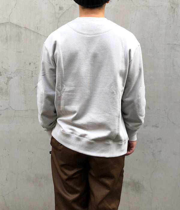 POLYPLOIDから、SET IN SLEEVE Cが入荷しました。ドライな質感の厚手のコットンを使用した裏パイル仕立てのSWEAT SHIRT。大きなVガゼットに、サイドにリバースウィーブ仕立てのパネル切り替えを施したラギットな雰囲気の一着。同素材であてがったエルボーパッチがポイント。